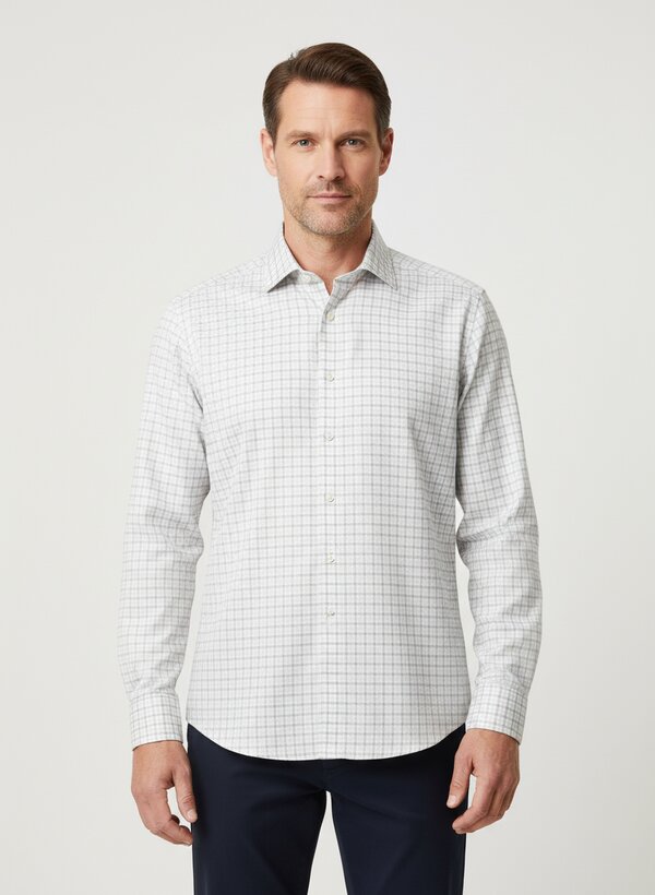 Das klassische Karo in Braun und Weiß wird durch das subtile Strukturgewebe zu einer dezenten Oberflächentextur – optisch prägnant, haptisch angenehm differenziert. Die reine Baumwolle liegt hautfreundlich an und besticht durch ihre natürliche Atmungsaktivität, die den ganzen Tag über Frische bewahrt. Der Body-Fit-Schnitt folgt einer modernen, taillierten Silhouette ohne zu eng zu wirken – ideal für Geschäftstermine und urbane Alltags-Eleganz. Die weitenverstellbare Sportmanschette ermöglicht flexible Styling-Optionen, während die bügelleichte Verarbeitung Zeit spart und das Hemd formstabil hält. OLYMP setzt seit 1951 auf schwäbische Handwerkskunst und funktionale Innovation – dieses Level-Five-Modell vereint beide Traditionen mit zeitgemäßem Design und OEKO-TEX-Zertifizierung.Unser Tipp: Kombinieren Sie das Karo-Hemd mit einer anthrazitfarbenen Chino und Loafern für einen gepflegten Business-Casual-Look, der auch in wärmeren Monaten elegant wirkt.