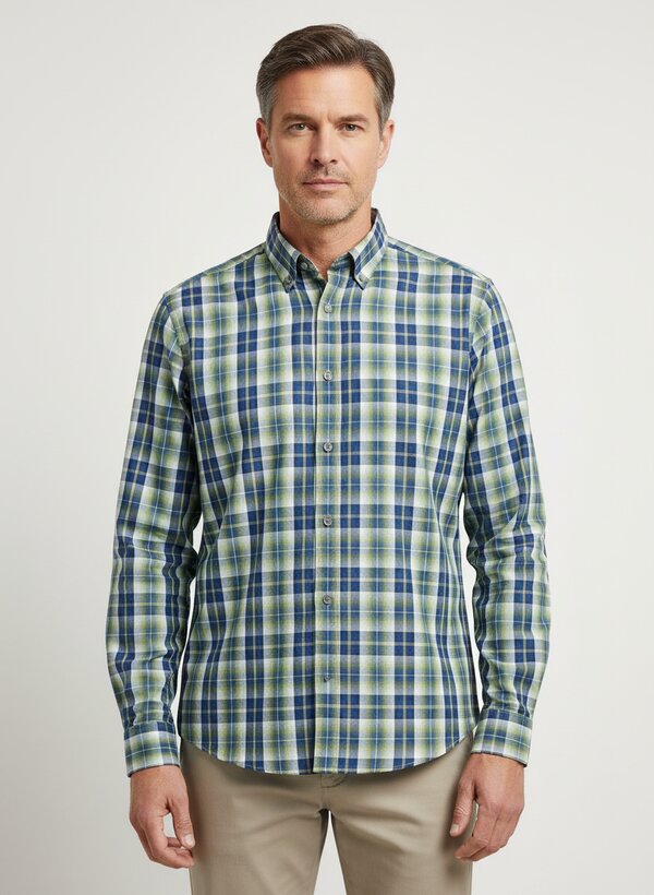 Smaragdgrün kariert mit klassischem Button-Down-Kragen