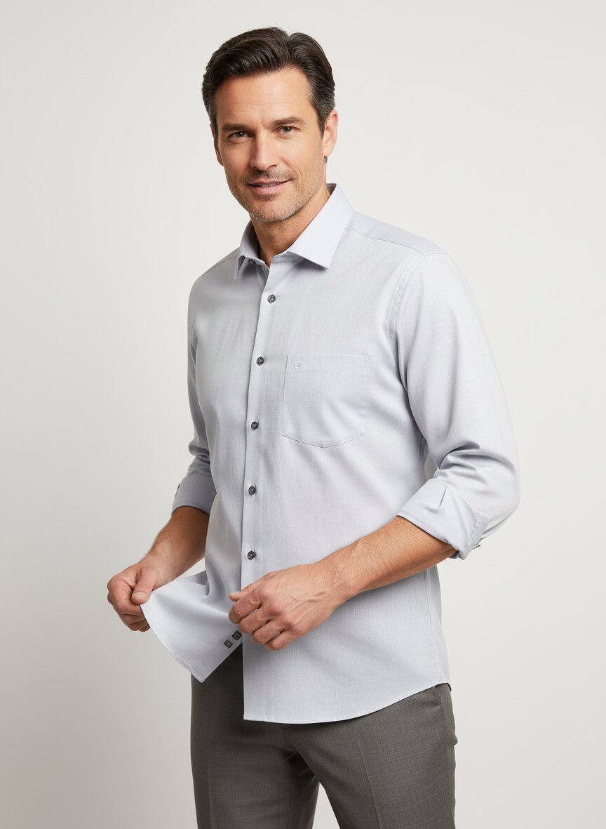 Meliertes Silbergrau mit bügelfreier Eleganz