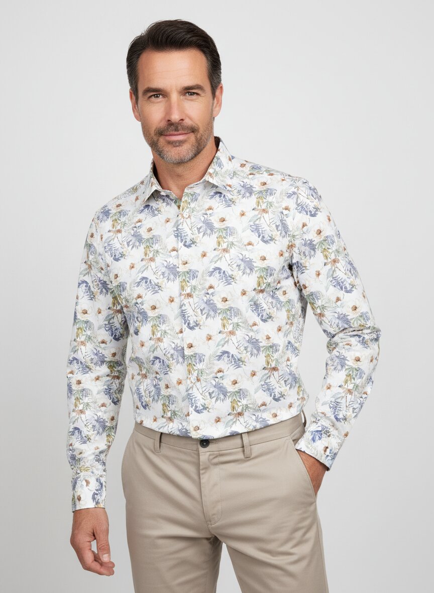 Weiß mit floralen Mustern im modernen Body-Fit-Schnitt