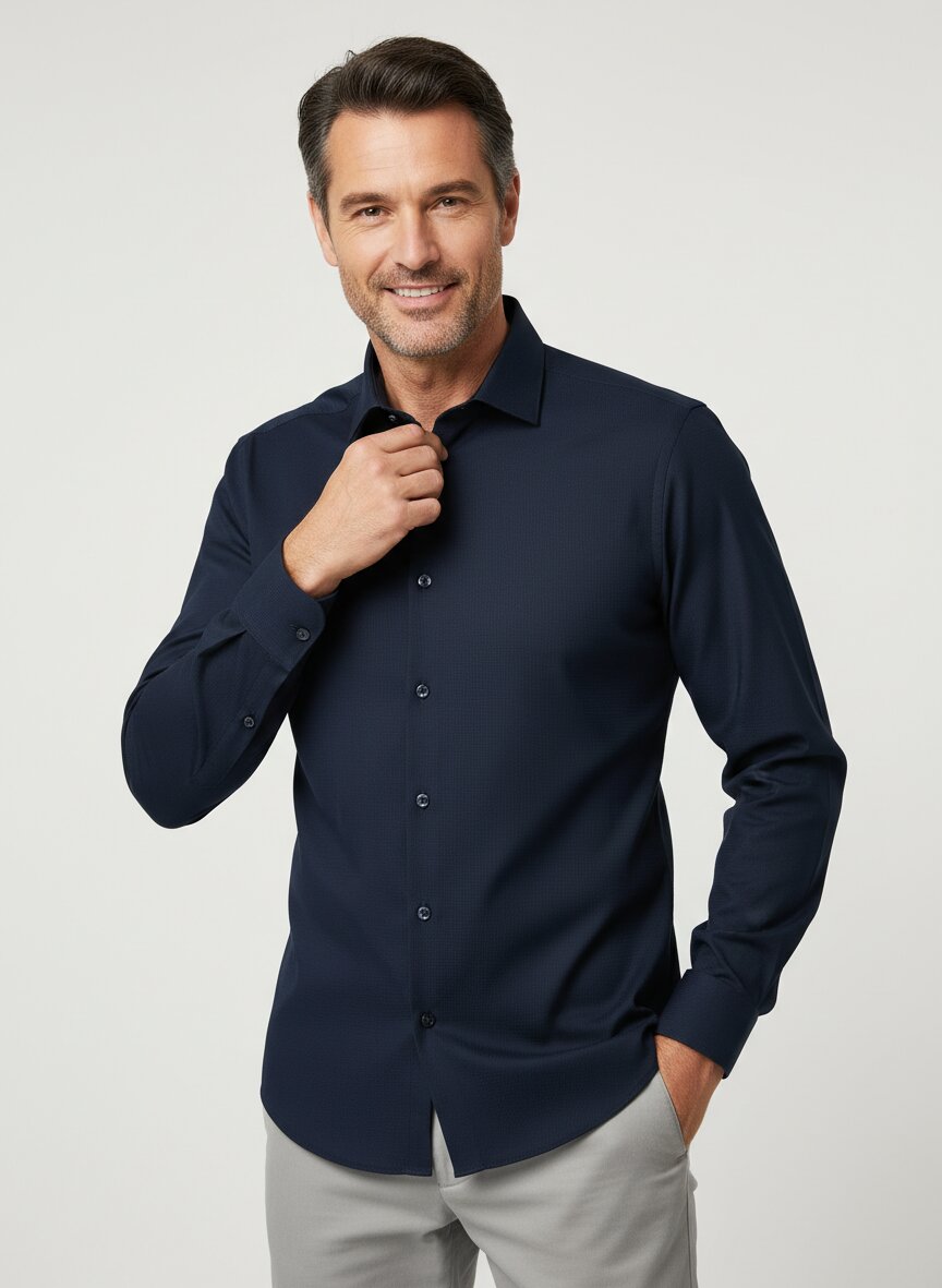 Dieses Hemd besticht durch seine feine Gewebestruktur in Titan-Optik, die dem klassischen Grau eine subtile Tiefenwirkung verleiht. Der Baumwoll-Stretch-Mix mit 3 Prozent Elastolefin bietet außergewöhnliche Bewegungsfreiheit und sitzt wie eine zweite Haut – ohne dabei zu binden oder einzuengen. Im Body-Fit-Schnitt mit Kentkragen und weitenverstellbarer Sportmanschette meistert das Hemd mühelos den Übergang von Business zu Urban. Die bügelleichte Verarbeitung mit knitterarmer Ausrüstung spart Zeit im Alltag, während die Abnäher im Rückteil für präzise Passform sorgen. OLYMP verkörpert seit 1951 schwäbische Hemden-Tradition: innovative Funktionalität, die sich nicht in den Vordergrund drängt, sondern einfach funktioniert. Das Hemd trägt zudem das OEKO-TEX® STANDARD 100-Zertifikat und unterstreicht damit das Engagement für Nachhaltigkeit.Unser Tipp: Kombinieren Sie das Hemd mit einer dunklen Chino und Loafern für einen zeitgemäßen Smart-Casual-Look, der auch unter dem Blazer perfekt sitzt.
