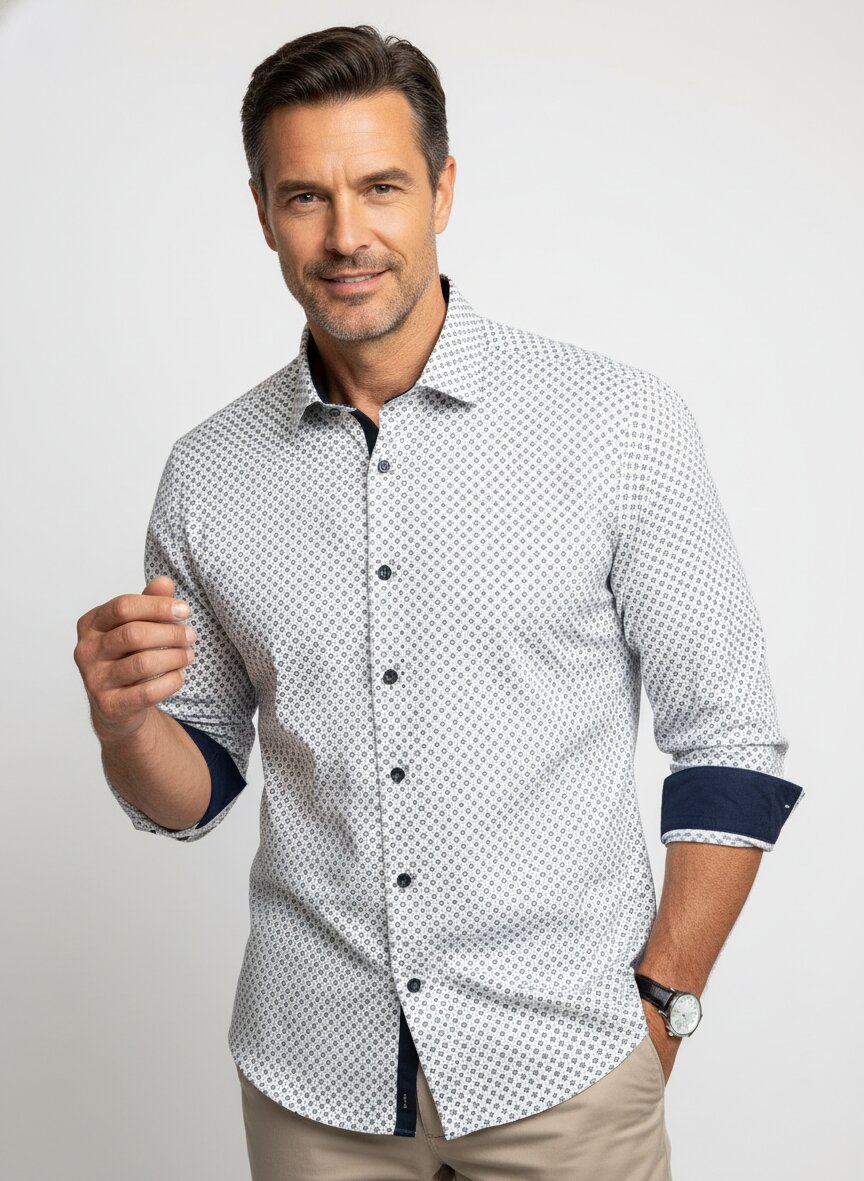 Ein subtiler, durchgehender Muster-Print in warmen Blau- und Brauntönen verleiht diesem OLYMP-Hemd zeitgemäße Tiefenwirkung ohne Aufdringlichkeit. Die reine Baumwolle sitzt geschmeidig auf der Haut und besticht durch ihre natürliche Atmungsaktivität – die bügelfreie Ausrüstung spart Zeit, ohne Kompromisse beim Tragegefühl einzugehen. Der Modern Fit schmeichelt der Silhouette mit leicht taillierten Seitennähten und bietet gleichzeitig ausreichend Bewegungsfreiheit für den Alltag. Praktische Details wie die weitenverstellbare Kombimanschette mit kontrastierender Innenseite und der Kent-Kragen mit Kontrastdetails am Innensteg zeigen handwerkliche Sorgfalt. Seit 1951 fertigt OLYMP in Schwaben Hemden, die Präzision und Alltagstauglichkeit verbinden – jedes Modell durchläuft strenge Qualitätskontrollen und trägt das OEKO-TEX® STANDARD 100-Zertifikat.Unser Tipp: Kombinieren Sie das Hemd mit einer dunklen Chino und Loafers für einen mühelosen Business-Casual-Look, der auch spontan vom Büro ins Restaurant passt.