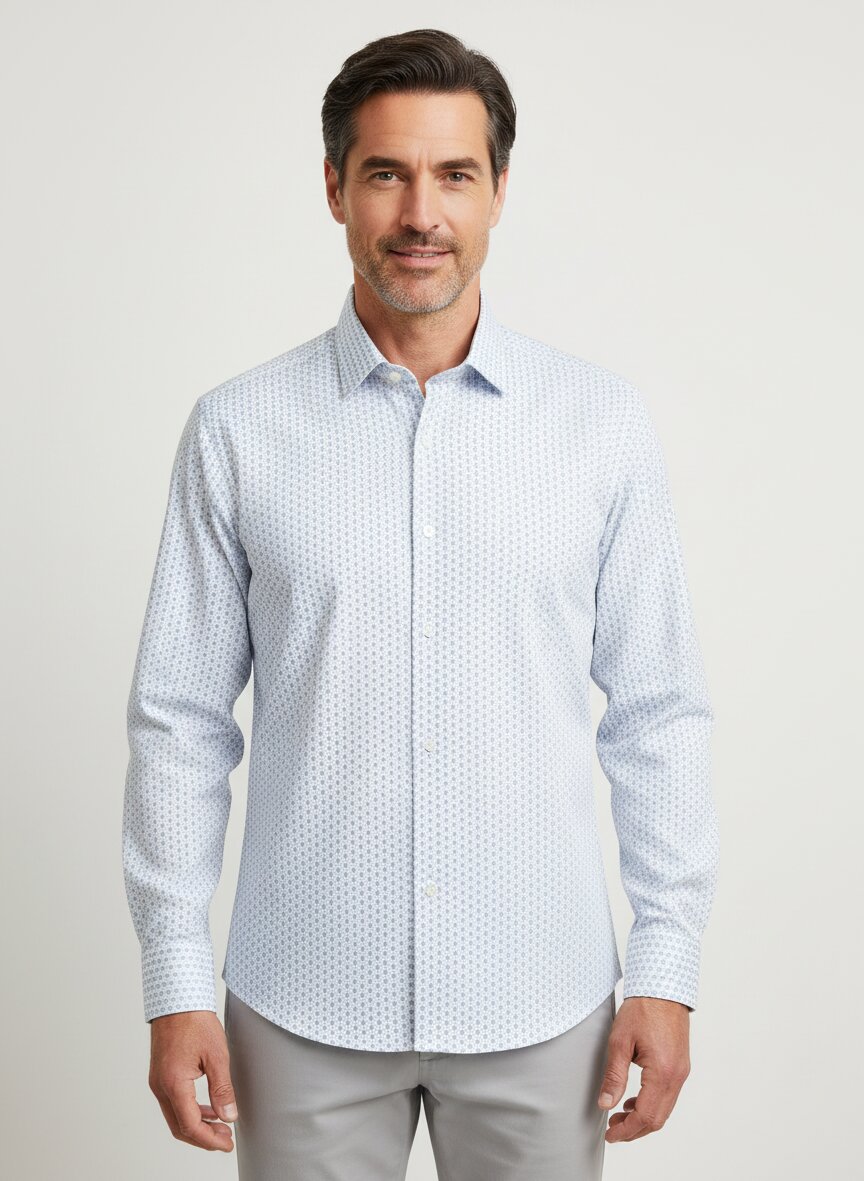 Das durchgehende Blüten-Design in gedeckten Tönen verleiht diesem Hemd eine subtile, moderne Eleganz, die über klassische Hemdenästhetik hinausgeht. Der Baumwoll-Stretch-Mix mit 3% Elastolefin sitzt angenehm körpernah und bietet gleichzeitig Bewegungsfreiheit – die bügelleichte Verarbeitung spart Zeit im Alltag. Der Body-Fit-Schnitt mit verlängerter Rückenlänge und extra langem Arm wurde speziell für proportionierte Träger entwickelt und garantiert optimale Passform ohne Kompromisse. Die weitenverstellbare Sportmanschette und der klassische Kentkragen machen das Hemd flexibel für Business und gehobene Freizeit einsetzbar. OLYMP verkörpert seit 1951 schwäbische Hemdenkunst – präzise Schnitte, innovative Materialien und das Vertrauen in deutsche Handwerksqualität. Das Modell trägt das OEKO-TEX® STANDARD 100-Siegel und gehört zur nachhaltigen Level Five GREEN Choice-Linie.Unser Tipp: Kombinieren Sie das Hemd mit einer dunklen Chino und Lederschnürern für einen eleganten Wochenend-Look, oder tragen Sie es offen über einem schlichten Shirt für urbane Leichtigkeit.