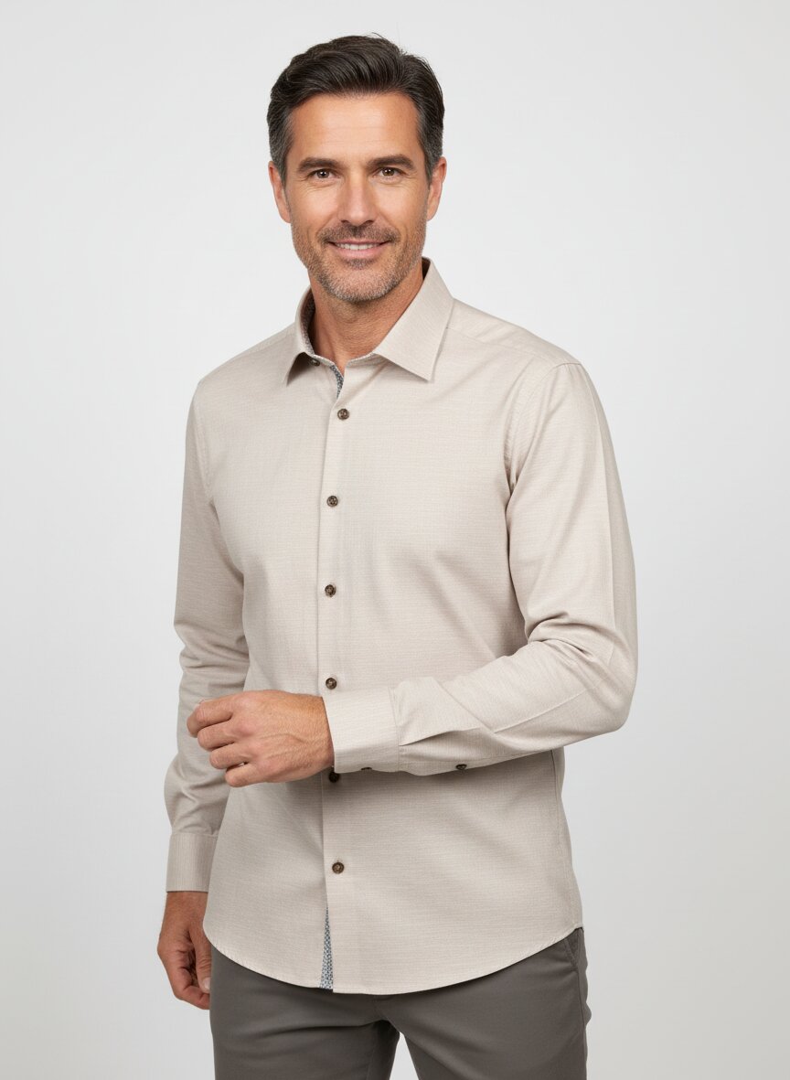 Das Hemd ist aus Baumwoll-Stretch gefertigt, was eine angenehme Kombination aus natürlicher Baumwolle und elastischen Fasern bietet. Dies ermöglicht maximalen Komfort und Bewegungsfreiheit bei gleichzeitiger Formbeständigkeit.