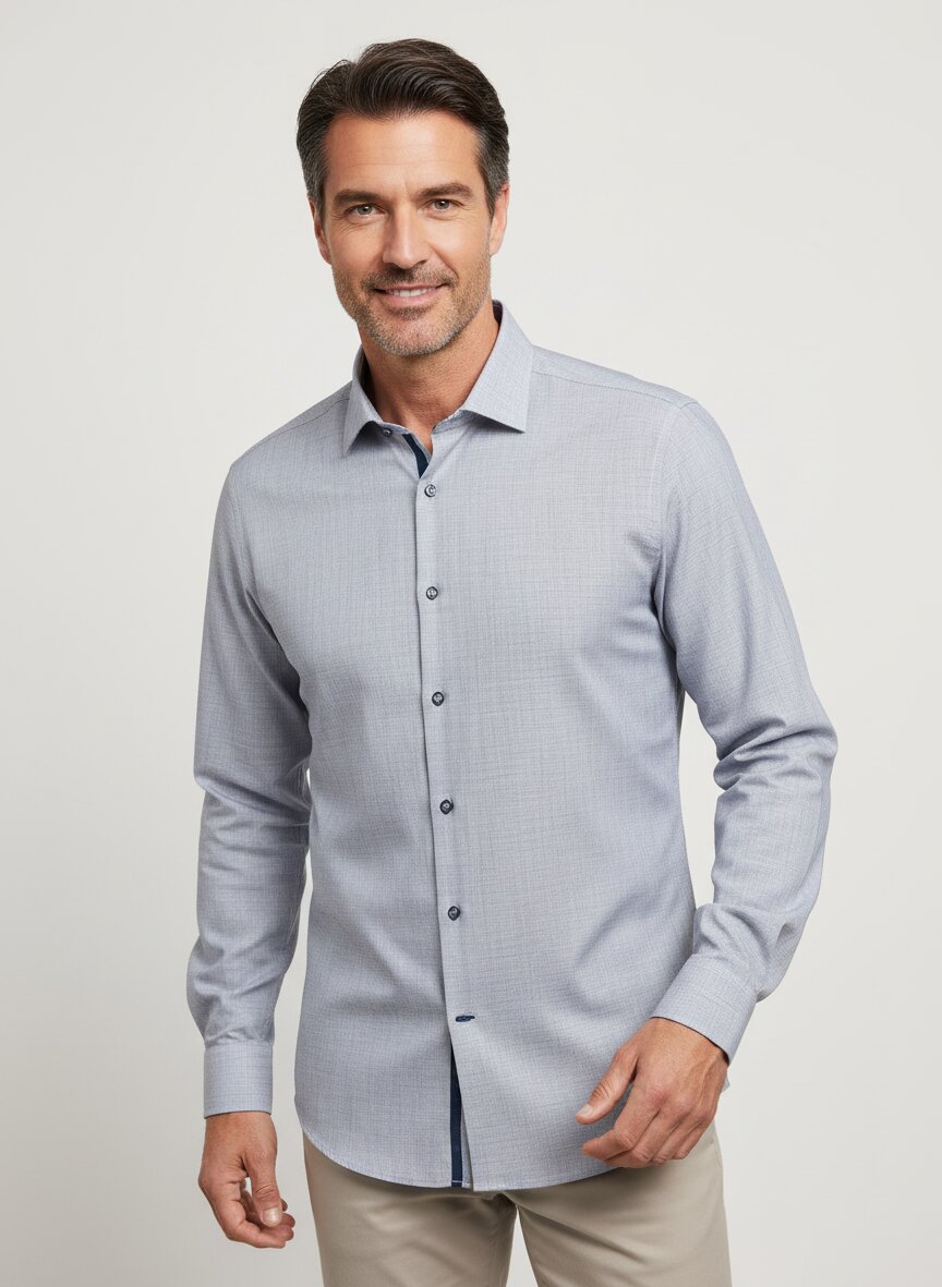 Hemd aus komfortablem Baumwoll-Stretch mit feiner Querstruktur in Bicolor