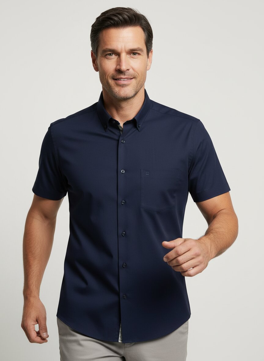 OLYMP, Kurzarmhemd, New Modern, Baumwolle, Button-Down, Brusttasche, marine