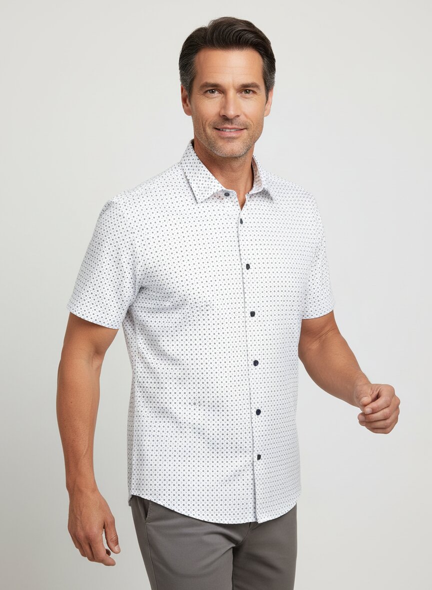 Kurzarmhemd aus Baumwoll-Stretch mit Mikro Muster-Print