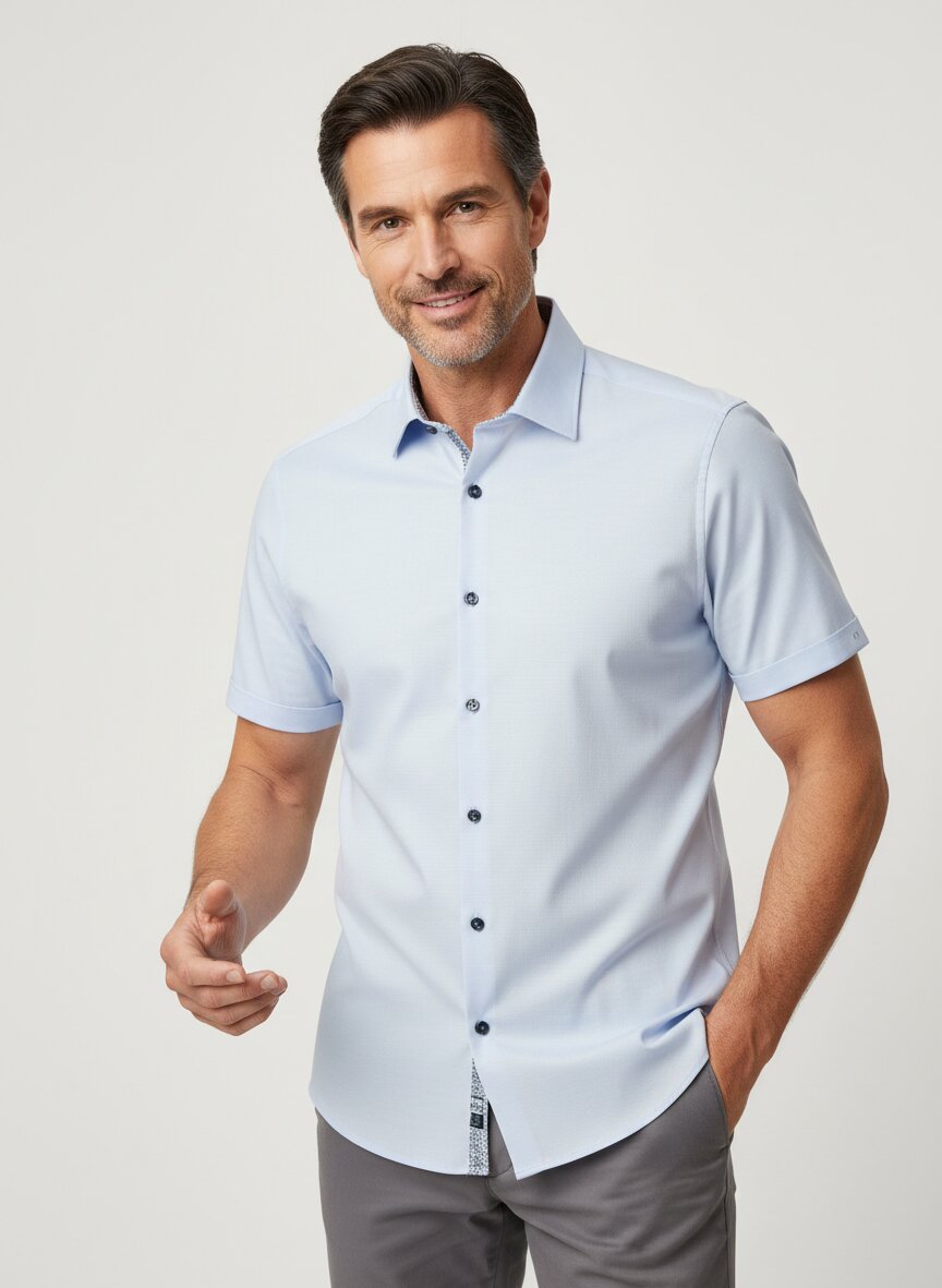 Kurzarmhemd aus Baumwoll-Stretch mit feiner Webstruktur