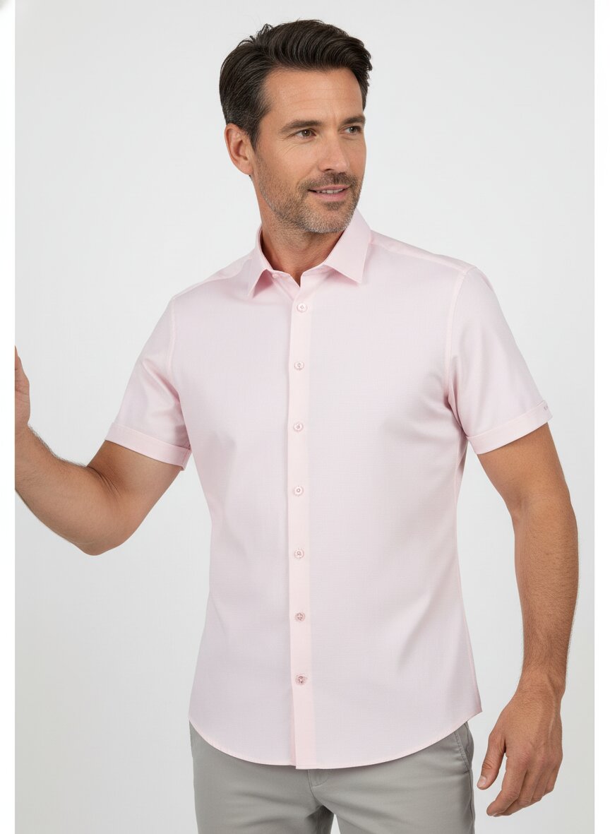 Kurzarmhemd aus Baumwoll-Stretch mit feinem Webmuster