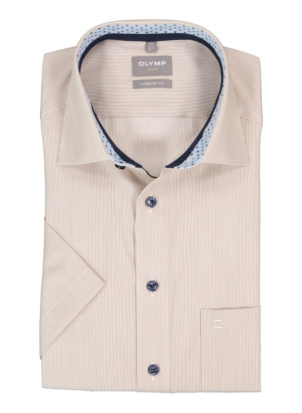 OLYMP, Kurzarmhemd, Comfort, Baumwolle, Kent, Brusttasche, nougat gestreift