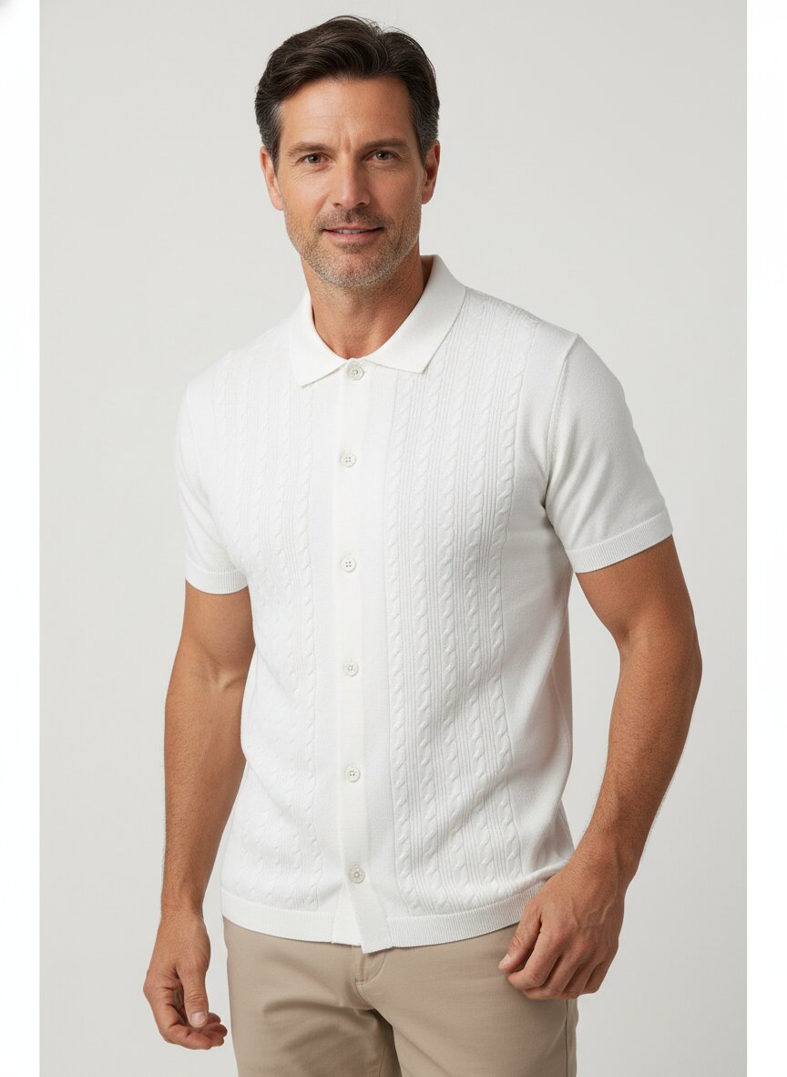 Strickhemd mit edler Zopf-Struktur im Vorderteil