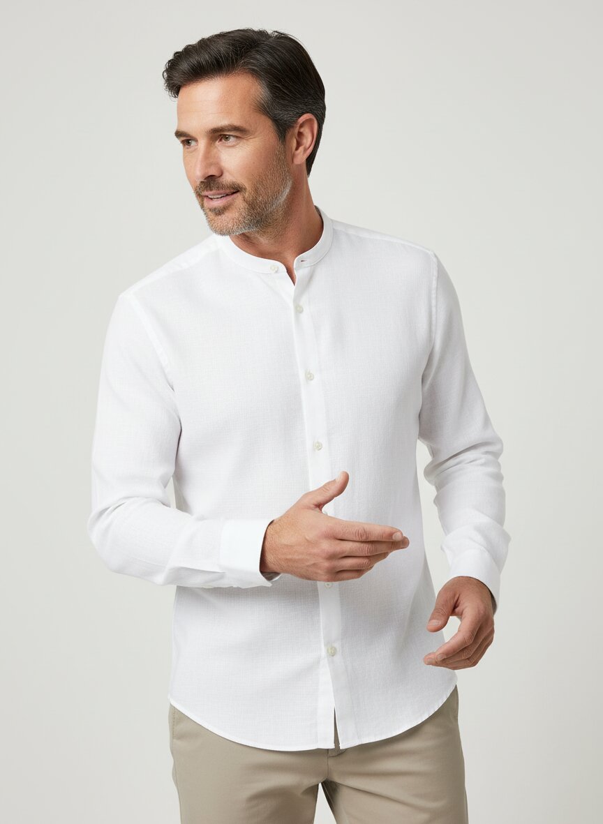 Das Hemd verfügt über eine Knopfleiste mit Perlmuttknöpfen in der gleichen Farbe wie das Hemd sowie lange Ärmel mit Manschettenknöpfen. Der Stehkragen und die saubere Verarbeitung unterstreichen die hochwertige Qualität der OLYMP Casual-Linie.