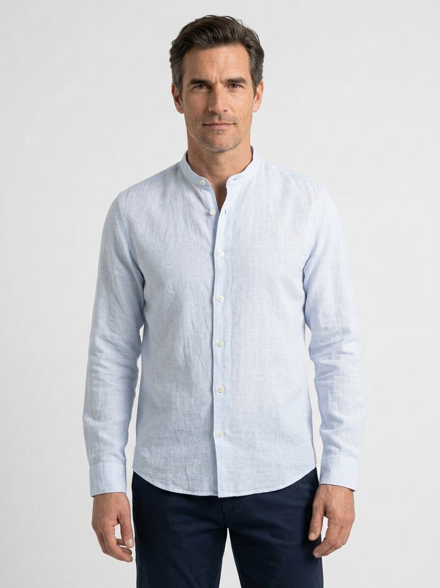 Hemd aus fein gestreiftem Leinen mit Stehkragen