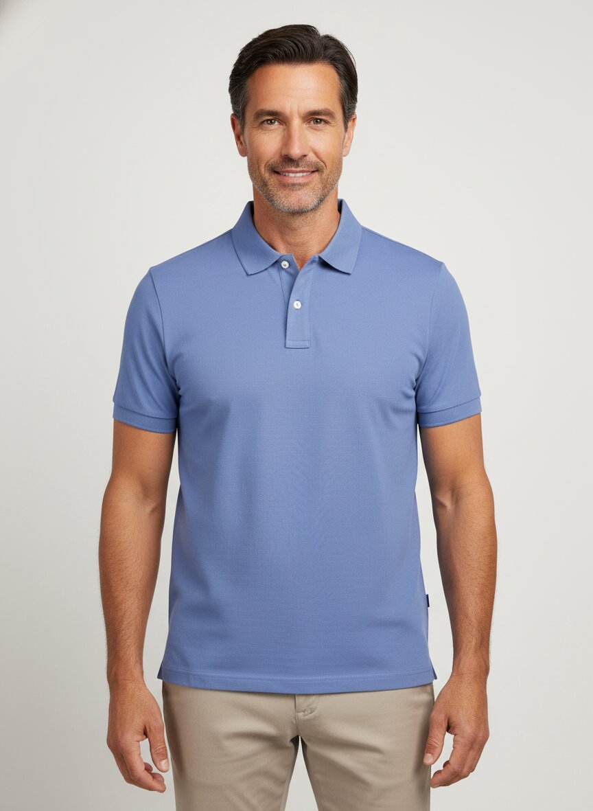 Kurzarm Polo-Shirt mit Knopfleiste, Rippenstrickbündchen und Seitenschlitzen