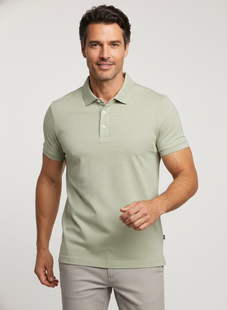 Polo-Shirt in Flammgarn-Struktur mit Kentkragen