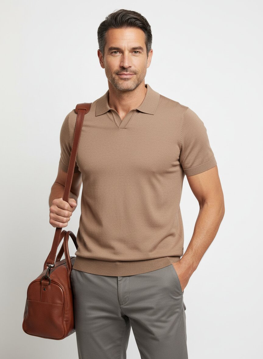 Strick-Polo mit kurzem, offenem V-Kragen
