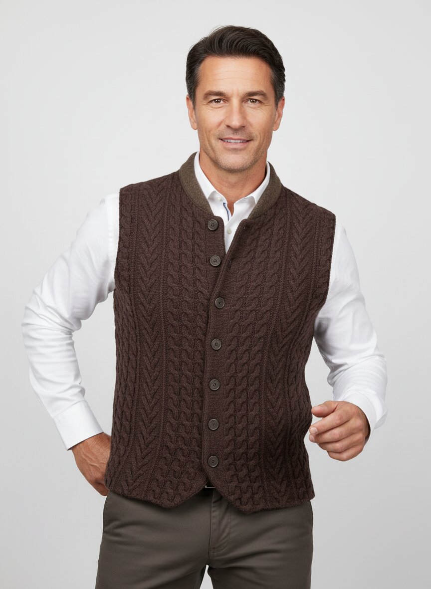 Mit ihrem traditionellen Charakter und dem Zopfstrickmuster ist die Weste ideal für Trachten-Outfits und klassische, ländliche Styles geeignet. Sie lässt sich aber auch zu modernen Casual-Looks kombinieren.
