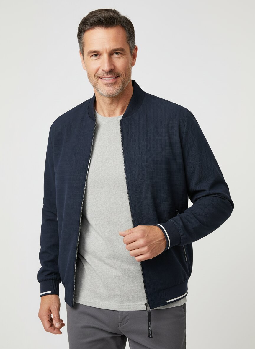 Der Blouson verfügt über zwei seitliche Reißverschlusstaschen und einen durchgehenden Frontreißverschluss. Die Ärmelabschlüsse und der Saum sind mit elastischen Bündchen ausgestattet für eine gute Passform.