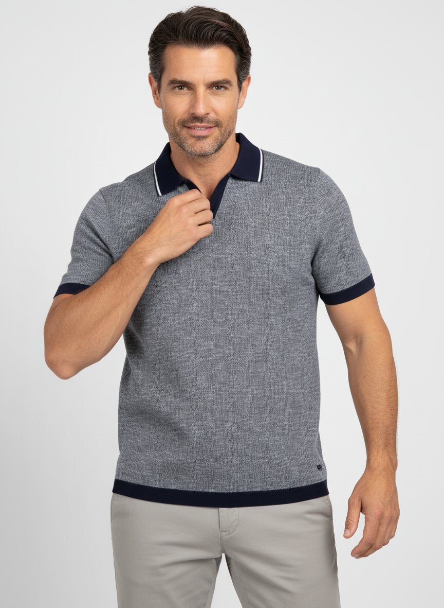 Das Polo-Shirt ist aus hochwertigem Feinstrick gefertigt. Die melierte Struktur verleiht dem Shirt eine angenehme Oberflächenstruktur und ein elegantes Aussehen.