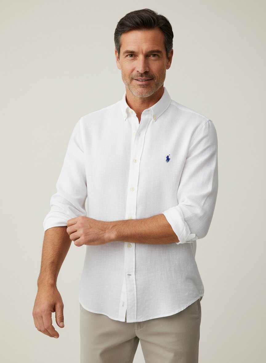 Reines Leinen in klassischem Weiß mit Button-Down-Kragen