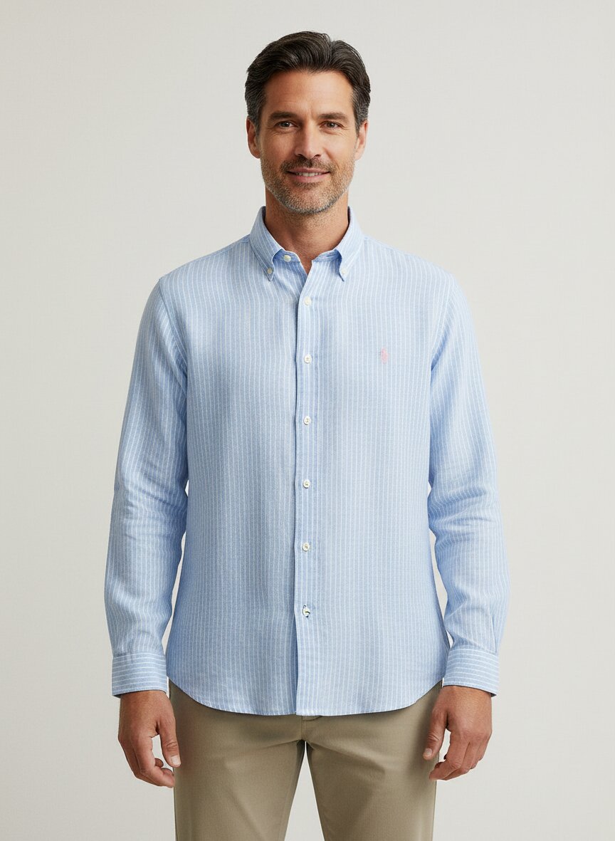 Reines Leinen im maritimen Streifen – Button-Down-Kragen mit klassischer Eleganz