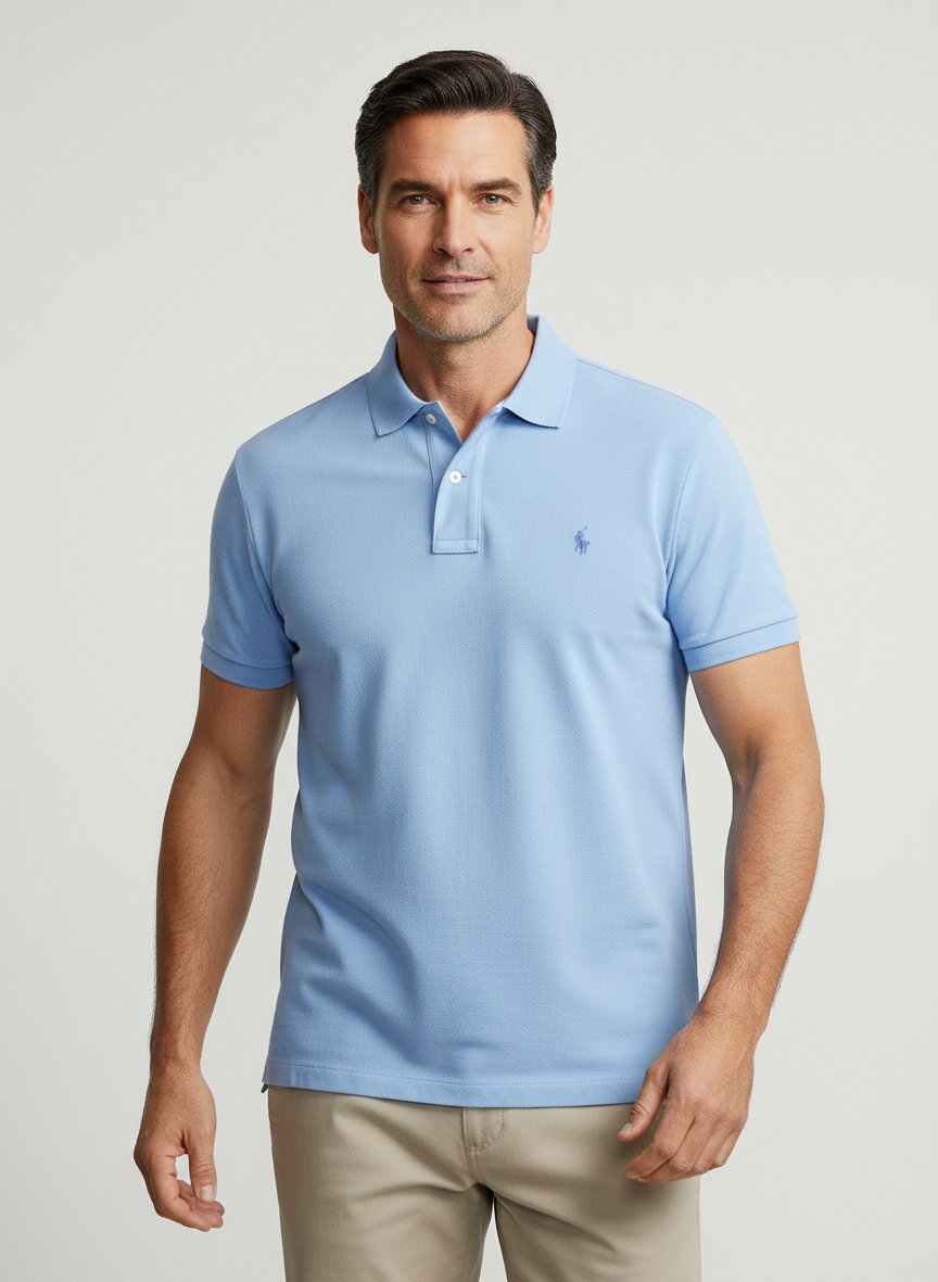 Das Polo-Shirt besticht durch sein dichtes Baumwoll-Piqué in strahlendem Himmelblau – eine Webstruktur, die dem Material Griffigkeit und optische Tiefe verleiht. Die reine Baumwolle liegt angenehm auf der Haut, atmet zuverlässig und behält auch nach häufigem Tragen seine Form. Die klassische Knopfleiste, die Rippenstrickbündchen an den Ärmeln und die seitlichen Schlitze schaffen einen zeitlosen Look für Alltag und Freizeit. Die hinten länger geschnittene Passform bietet zusätzliche Bewegungsfreiheit und sitzt auch in größeren Größen perfekt. Polo Ralph Lauren hat seit 1967 den amerikanischen Preppy-Stil geprägt – dieses Polo-Shirt verkörpert genau diese Linie: schlicht, hochwertig, unvergänglich.Unser Tipp: Kombinieren Sie das Himmelblau mit einer khakifarbenen Chino und weißen Sneakern für einen klassischen, mühelosen Wochenend-Look.