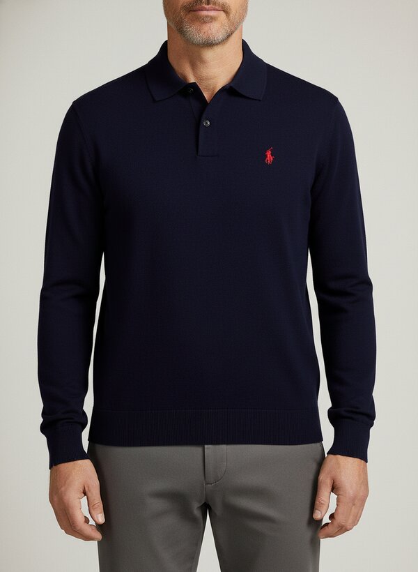 Der elegante Polokragen mit kurzer Knopfleiste verkörpert den ikonischen Preppy-Stil und setzt ein visuelles Erkennungszeichen, das zeitlos wirkt. Die reine Baumwolle in Feinstrick-Qualität schmiegt sich angenehm an die Haut und behält ihre Form über zahlreiche Wäschen hinweg – ein Zeichen echter Verarbeitungsqualität. Ob zur Chino oder Jeans: Das dezente Navy fügt sich mühelos in jeden Alltag ein und funktioniert gleichermaßen beim Wochenendausflug wie beim entspannten Bürotag. Die Rückenlänge von etwa 64 cm bei Größe M sitzt präzise und modern, weder zu lang noch zu kurz geschnitten. Seit 1967 definiert Polo Ralph Lauren den amerikanischen Klassiker – zeitlos, hochwertig und unauffällig elegant.Unser Tipp: Kombinieren Sie den Pullover mit einer hellen Chino und weißen Turnschuhen für einen mühelosen Wochenend-Look, der von der Ostküsten-Tradition erzählt.