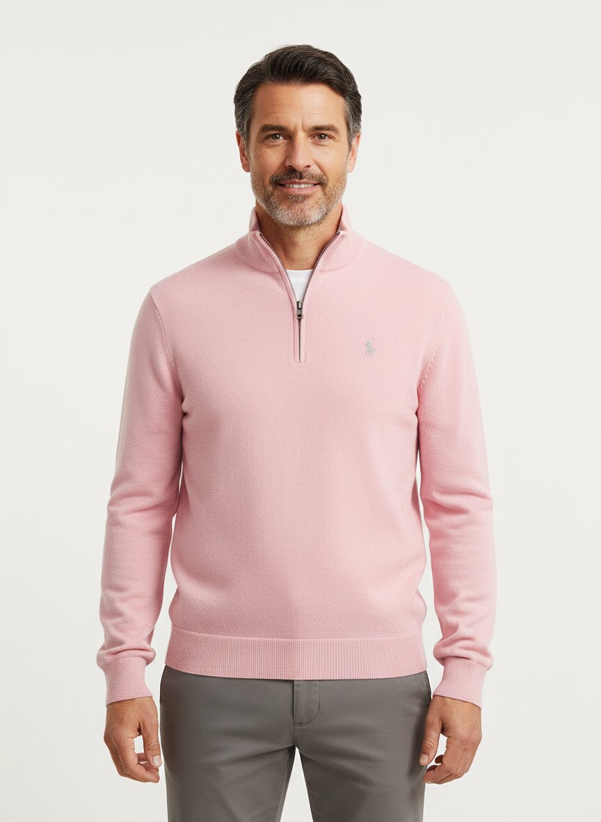 Dies ist ein authentischer Troyer von Polo Ralph Lauren, erkennbar am charakteristischen Pony-Logo auf der Brust. Polo Ralph Lauren ist bekannt für hochwertige, klassische Herrenmode.
