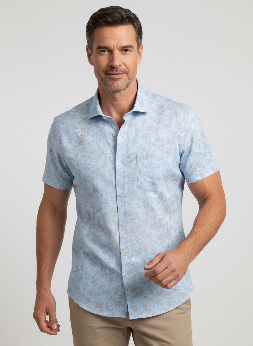 PURE, Kurzarmhemd, Jersey geruchshemmend, Kent, hellblau gemustert