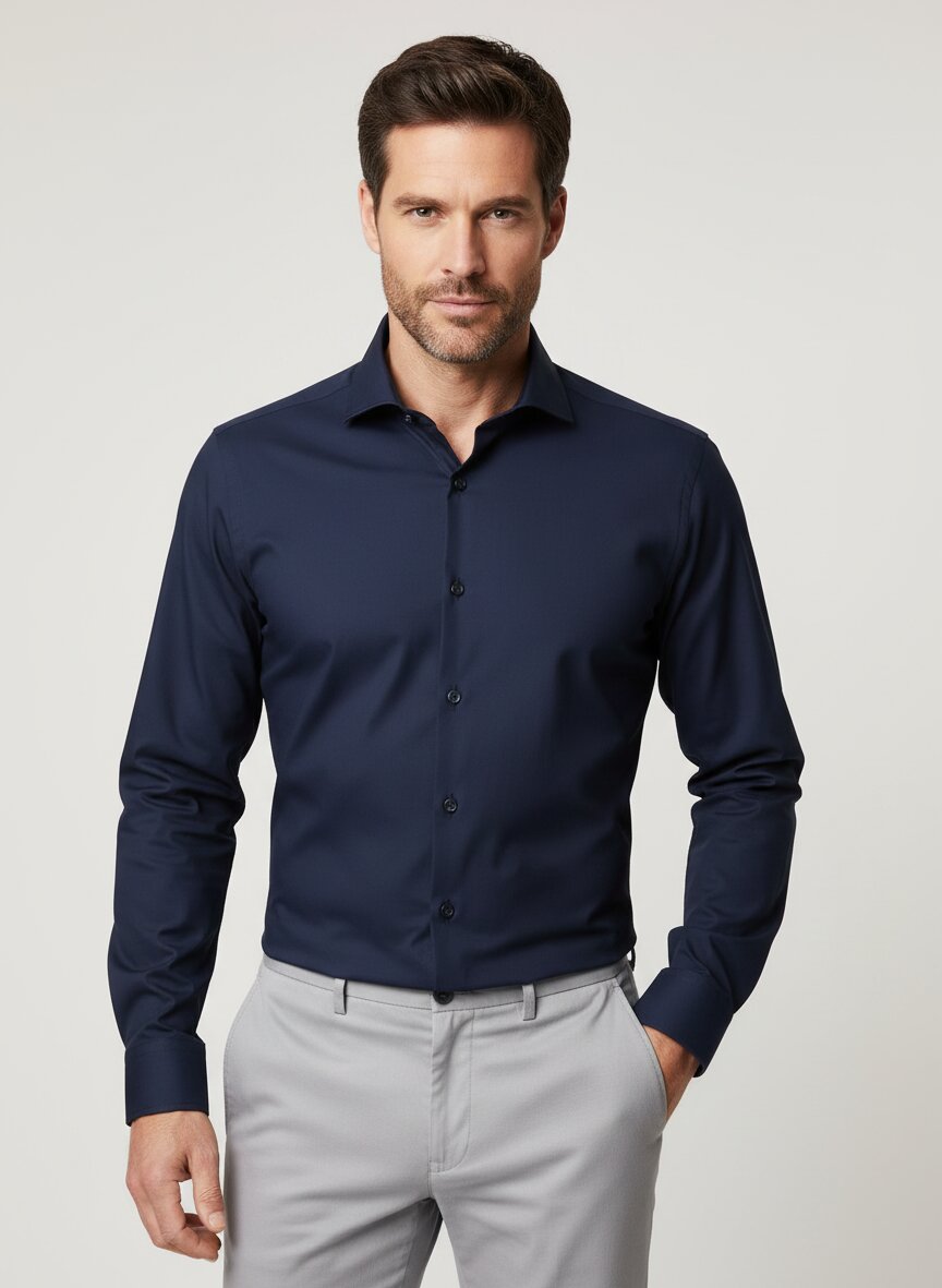Das tiefe Marineblau verleiht diesem schmalen Hemd zeitlose Eleganz für den modernen Business-Alltag. Die hochelastische Mikrofaser aus italienischer Produktion fühlt sich seidig an und bietet durch 13% Elasthan-Anteil außergewöhnliche Bewegungsfreiheit – ideal für dynamische Tage zwischen Büro und Sport. Der atmungsaktive Stoff transportiert Feuchtigkeit sofort nach außen und sorgt für ein angenehm trockenes Körperklima ohne Geruchsbildung. Praktische Details wie die weitenverstellbare Sportmanschette und der UV-Schutz 50+ unterstreichen die durchdachte Funktionalität. PURE verbindet seit 1996 klassische Business-Optik mit innovativer Sportfunktionalität und revolutioniert damit die Hemden-Welt für Männer, die flexibel zwischen verschiedenen Lebensbereichen wechseln.Unser Tipp: Kombinieren Sie das Hemd zu einer grauen Anzughose für den Business-Look oder zur dunklen Jeans für sportlich-elegante Freizeitmomente.