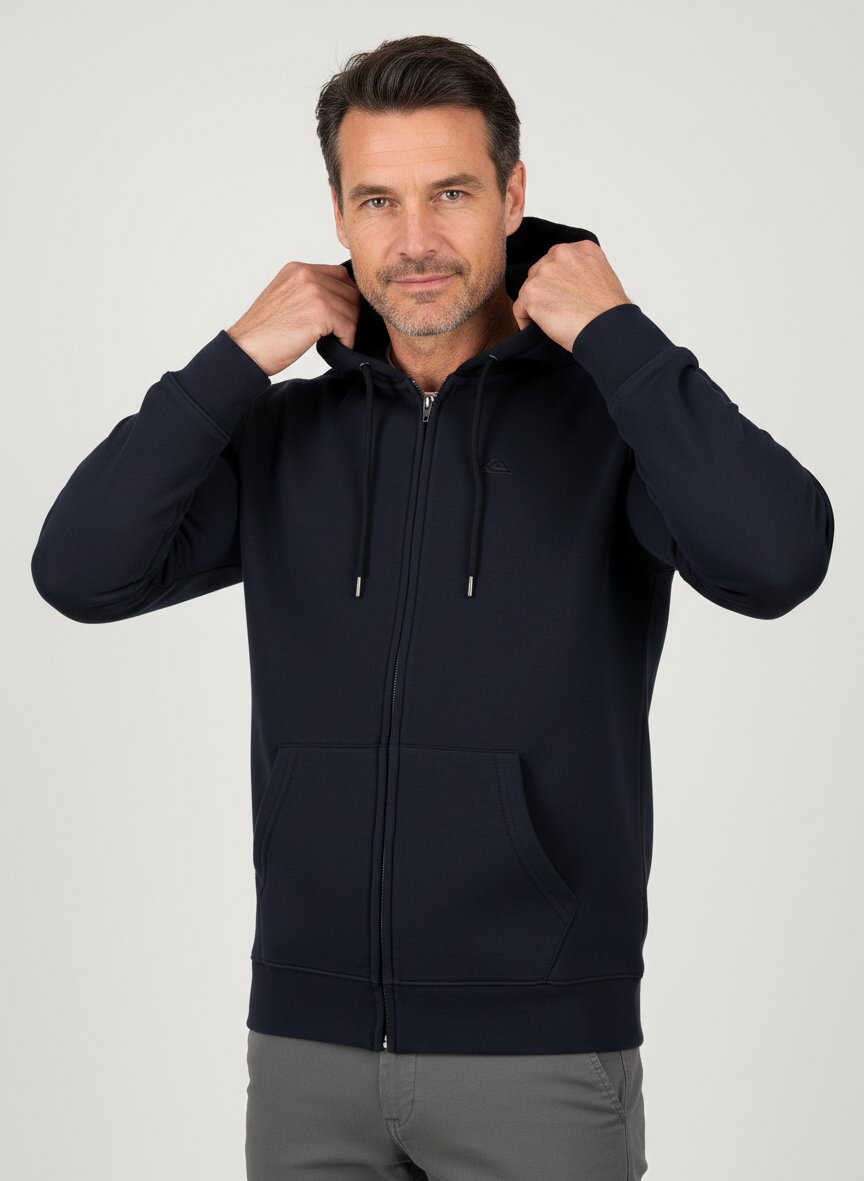 Diese Sweatjacke von Quiksilver besticht durch ihre zeitlose schwarze Färbung und die großzügige Kapuze mit verstellbarem Kordelzug. Der Baumwollmix aus 80 % Baumwolle und 20 % Polyester liegt weich auf der Haut und bietet gleichzeitig die nötige Formstabilität für den Alltag. Der durchgehende Reißverschluss ermöglicht flexibles Layering, während die praktische Kängurutasche Hand und Kleinteile zuverlässig verstaut. Mit einer Rückenlänge von etwa 70 cm bei Größe M sitzt die Jacke angenehm locker und erlaubt volle Bewegungsfreiheit. Quiksilver verbindet seit 1969 Board-Sport-Authentizität mit zeitgemäßem Lifestyle – diese Sweatjacke verkörpert genau diese Philosophie: funktional, unkompliziert und unaufdringlich elegant.Unser Tipp: Kombinieren Sie die schwarze Sweatjacke mit einer hellen Chino und weißen Sneakern für einen lässigen Urban-Look, der von Frühjahr bis Sommer überzeugt.