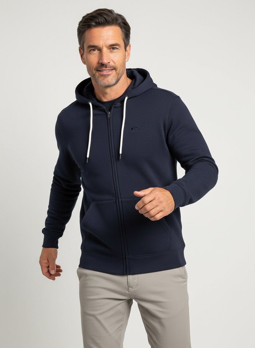 Diese Sweatjacke von Quiksilver besticht durch ihre schlichte, zeitlose Farbgebung in tiefem Dunkelblau – eine Basis, die zu fast allem passt. Der Baumwollmix (80 % Baumwolle, 20 % Polyester) sitzt angenehm locker auf der Haut und bietet dabei genug Struktur, um auch nach häufigem Waschen seine Form zu bewahren. Die durchgehende Reißverschlussbahn und die Kapuze mit Kordelzug machen sie zum idealen Begleiter für wechselhafte Tage – ob beim Spaziergang, im Büro oder beim Entspannen. Die großzügige Kängurutasche bietet praktischen Stauraum für Hände oder kleine Gegenstände. Seit 1969 steht Quiksilver für authentische Board-Sport-Kultur, die sich in funktionalen Basics wie dieser Jacke widerspiegelt – keine Schnörkel, dafür ehrliche Qualität und Alltagstauglichkeit.Unser Tipp: Kombinieren Sie die Jacke mit einer hellen Chino und weißen Sneakern für einen entspannten Urban-Look, oder layern Sie sie über einem einfachen T-Shirt für zusätzliche Wärme in der Übergangszeit.