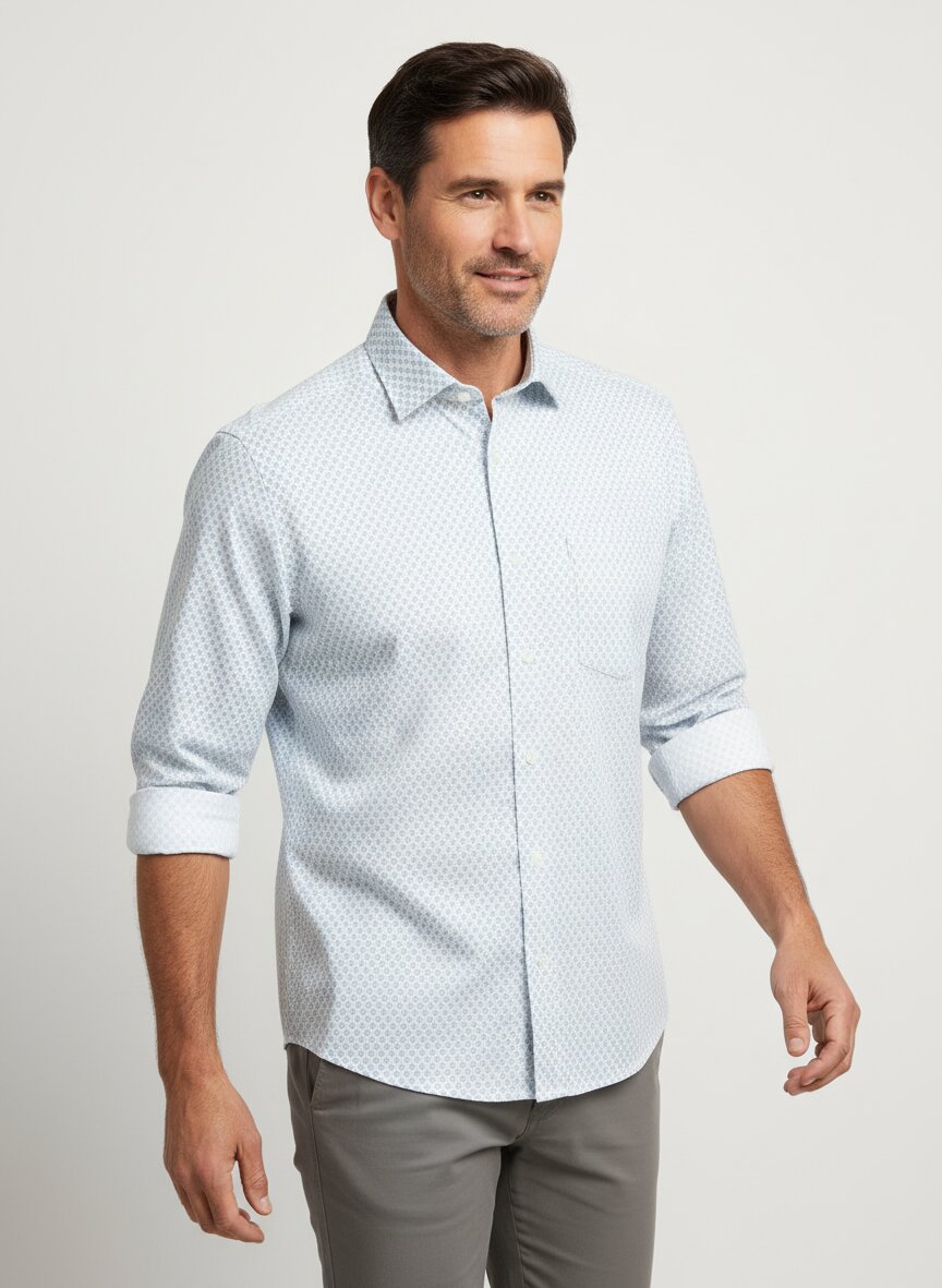 Dieses Hemd besticht durch ein feines All-Over-Muster auf mintgrünem Grund, das klassische Eleganz mit modernem Understatement verbindet. Die reine Baumwolle liegt angenehm auf der Haut, atmet zuverlässig und behält auch nach häufigem Waschen seine Form – ein Material, das sich anfühlt wie es sich anfühlen soll. Der Kent-Kragen und die praktische Brusttasche machen es zum vielseitigen Begleiter für Business und Freizeit gleichermaßen. Die weitenverstellbaren Sportmanschetten bieten Flexibilität im Alltag, während der Regular Fit eine zeitlose Silhouette gewährleistet. Seidensticker verkörpert seit 1919 deutsche Hemdenkunst aus Bielefeld – jedes Stück trägt die Handwerkskunst eines Familienunternehmens in sich, das Zuverlässigkeit und Innovation verbindet. Das Hemd ist zudem nach Öko-Tex® Standard 100 zertifiziert und damit unbedenklich für die Haut.Unser Tipp: Kombinieren Sie das mintgrüne Hemd mit einer dunkelblauen Chino und braunen Lederschuhen für einen eleganten Freizeit-Look, der auch im Büro besticht.