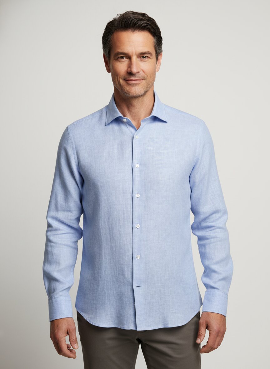 Das Hemd ist perfekt für Frühling und Sommer geeignet. Die hellblaue Farbe und die leichte Leinenkonstruktion machen es ideal für warme Tage, Business-Casual-Looks und Freizeitoutfits.