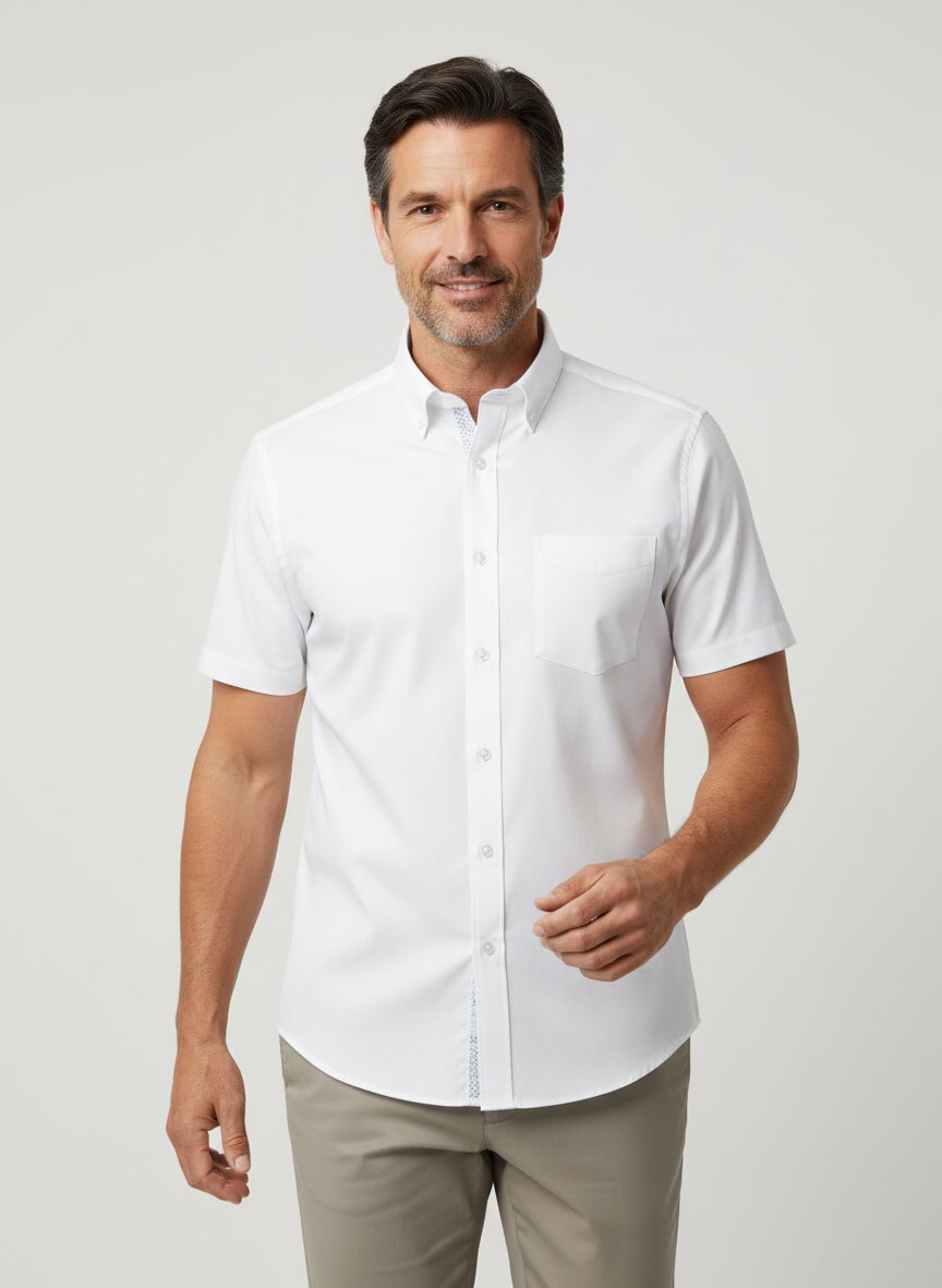 Kurzarmhemd aus Strukturgewebe für sommerliche Eleganz