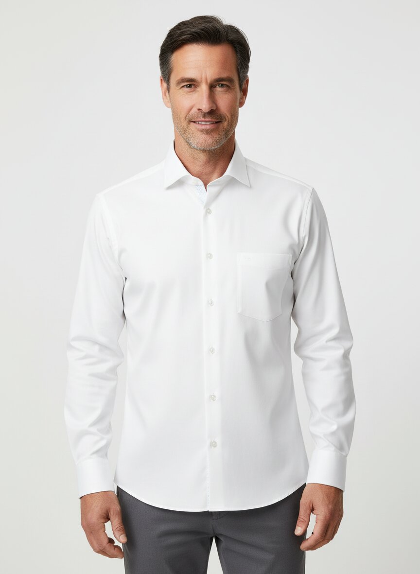 Weißes Bügelfreies Hemd mit extra langem Arm und Kentkragen