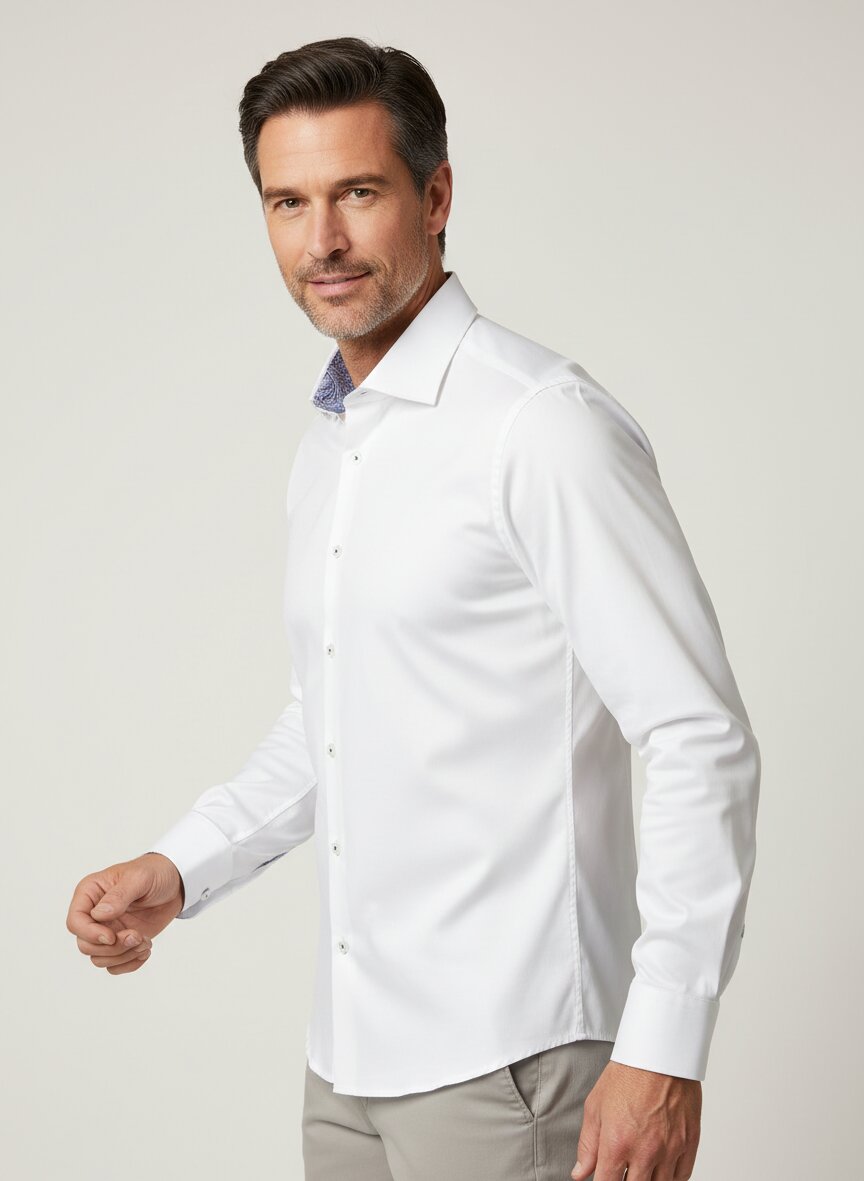 Weißes Bügelfreihemden mit blickdichter Baumwolle und Kent-Kragen
