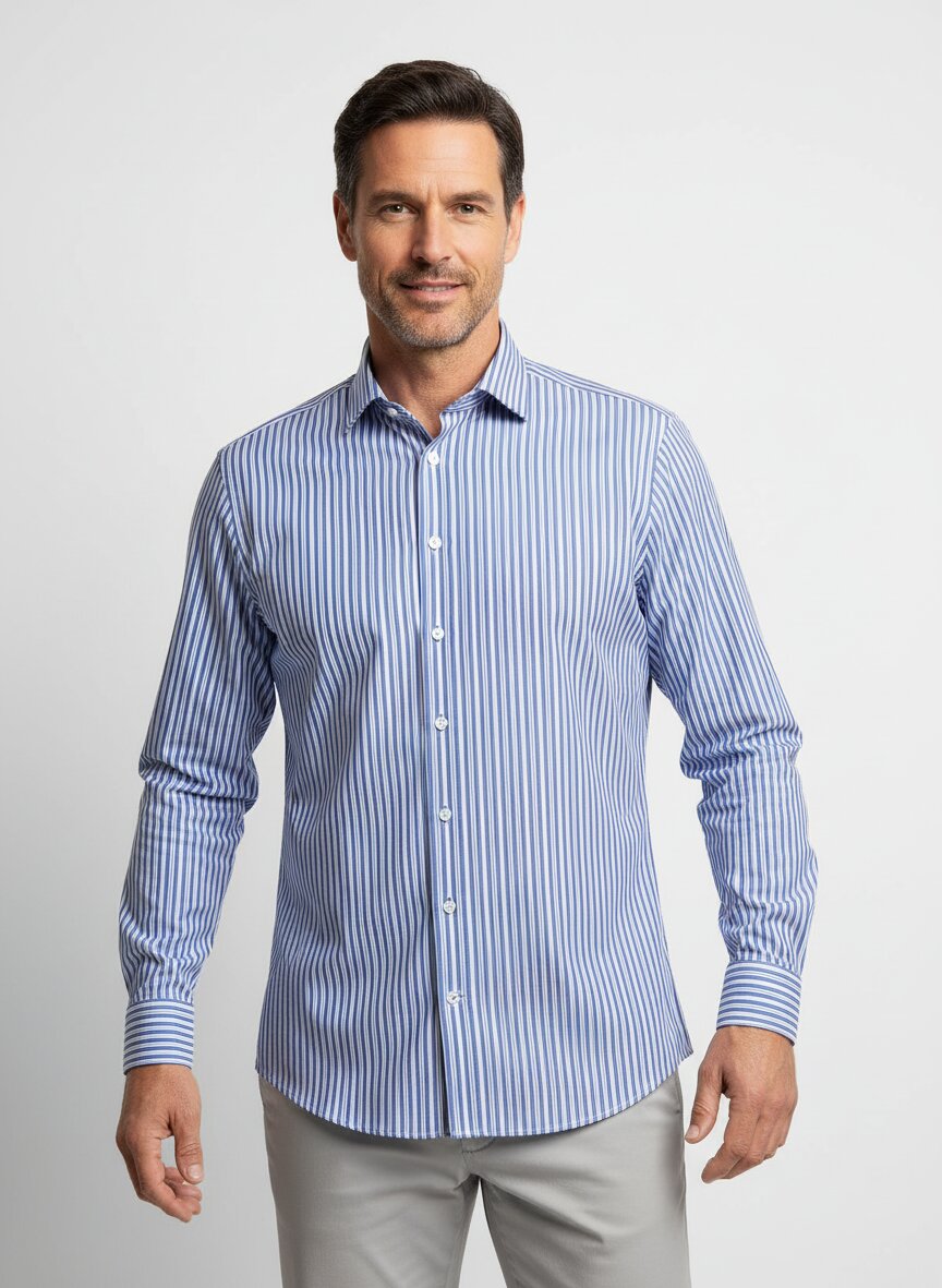 Blau gestreiftes Hemd mit eleganten Perlmuttknöpfen