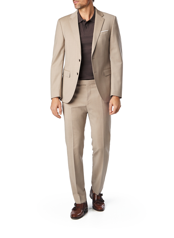 Anzug, Modern Fit, Schurwoll-Stretch, sand meliert