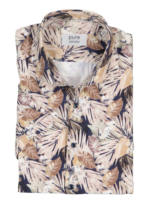 Kurzarmhemd, Casual Fit, Baumwolle, nachtblau floral