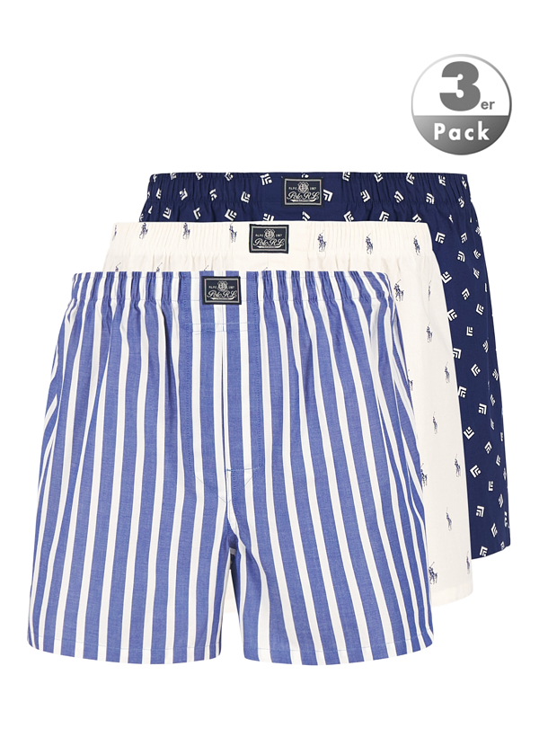 Boxershorts, Baumwolle, blau-weiß-navy gemustert