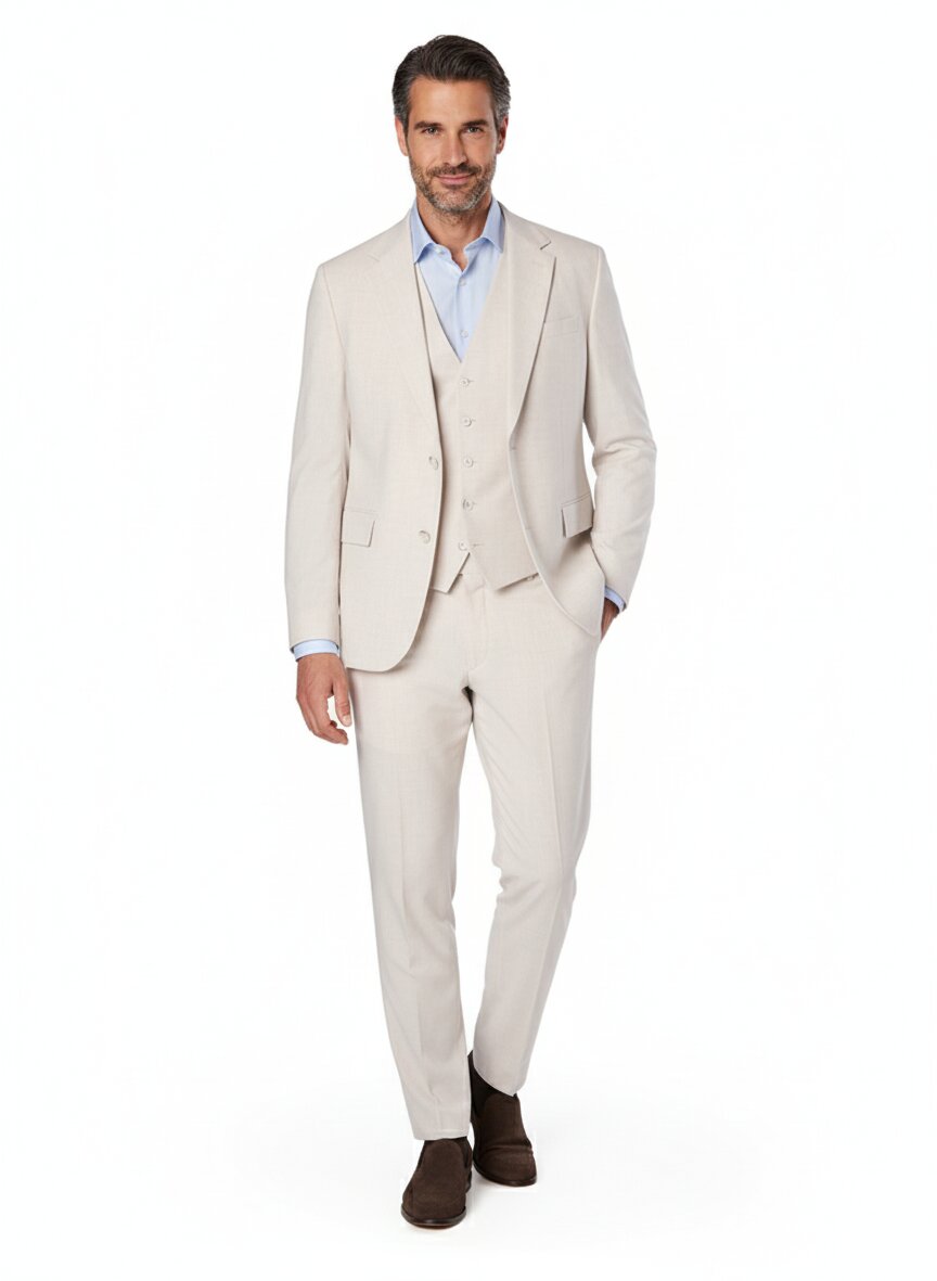 Dreiteiliger Anzug aus recyceltem Performance-Stretch in hellem Melange