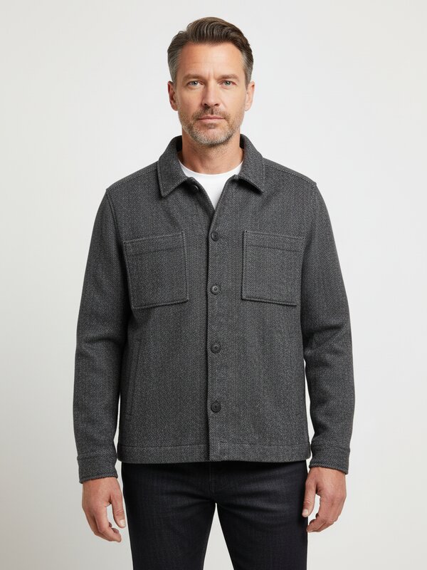 Anthrazit meliert im Fischgrat – Woll-Overshirt mit wasserabweisender Funktionalität