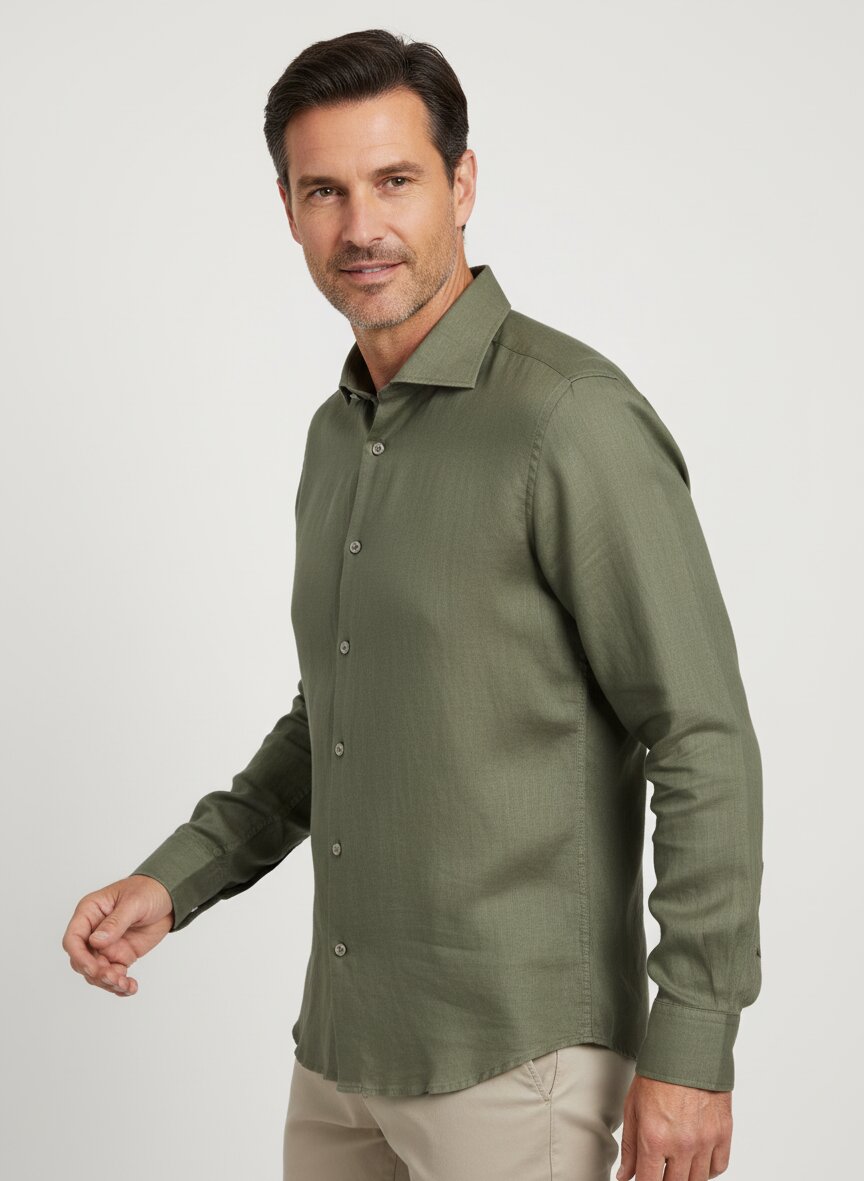 Das Hemd ist aus 100% reinem Leinen gefertigt. Leinen ist ein natürliches Material, das besonders atmungsaktiv und leicht ist – ideal für warme Jahreszeiten.