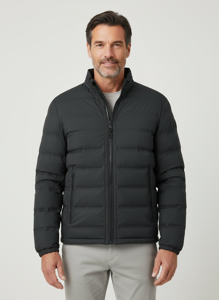 Schwarze Steppjacke mit präziser Heatpress-Struktur