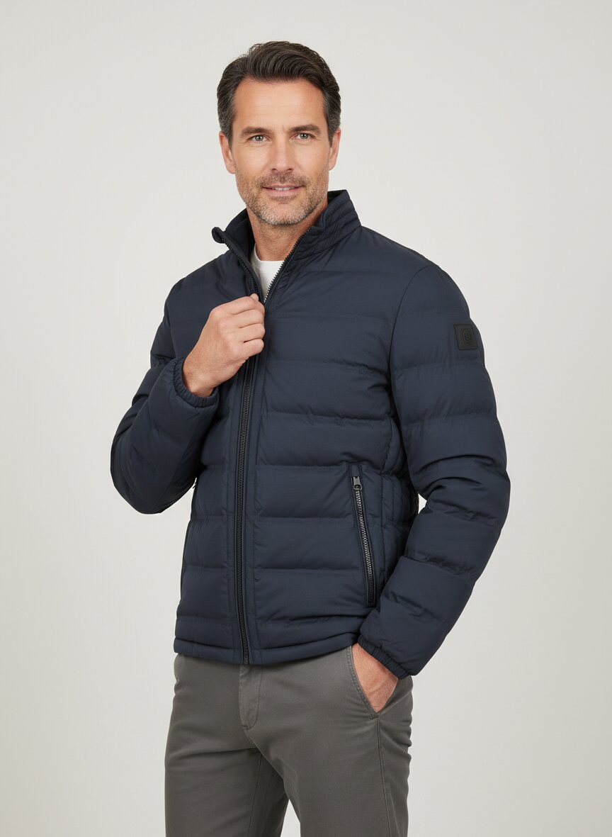 Die Steppjacke Comiso besticht durch ihre feingliedrige Heatpress-Steppung in klassischem Dunkelblau – eine optische Leichtigkeit, die Struktur schafft. Das wasserabweisende Mikrofaser-Obermaterial sitzt angenehm auf der Haut und bietet zuverlässigen Schutz vor Spritzwasser, während die recycelte Polyester-Wattierung wärmend wirkt, ohne zu beschweren. Der Stehkragen mit Kinnschutz und die seitlichen Reißverschlusstaschen machen sie zum verlässlichen Begleiter für Stadt und Alltag. Elastische Ärmelabschlüsse und ein regulierbarer Saum sorgen für eine präzise Passform, die Bewegungsfreiheit garantiert. Strellson verbindet hier Schweizer Ingenieurskunst mit urbaner Sachlichkeit – jedes Detail sitzt, nichts ist zufällig.Unser Tipp: Kombinieren Sie die Jacke mit einer hellen Chino und weißen Sneakern für einen modernen Urban-Look, oder layern Sie sie über einem feinen Rollkragenpullover für kühle Übergangstage.