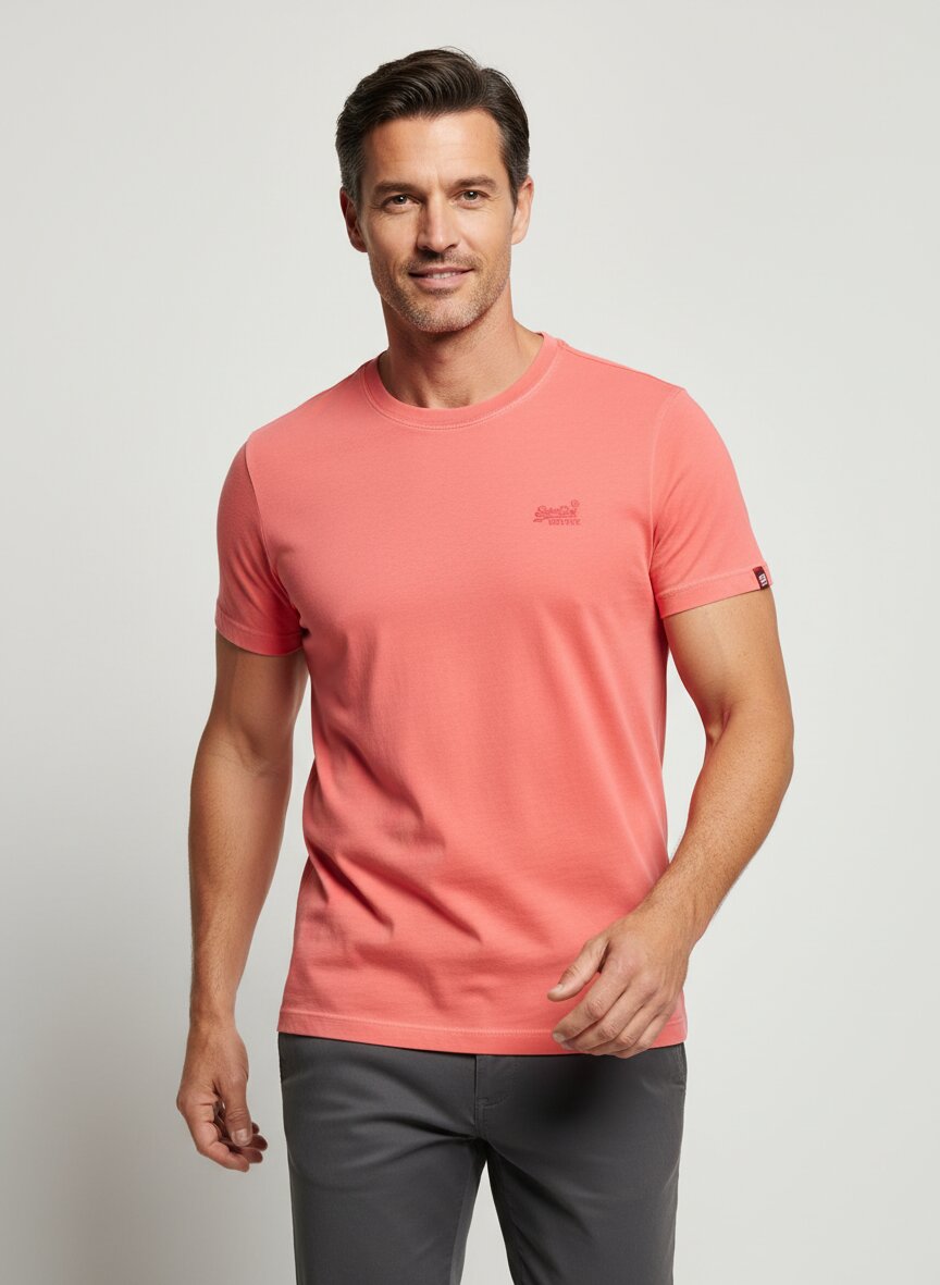 Die leuchtende Neonkorallenfarbe verleiht diesem klassischen T-Shirt sofort Präsenz und Frische – eine Farbe, die in der warmen Jahreszeit besticht. Das Material aus 100 Prozent Bio-Baumwolle wurde vorgewaschen und liegt dadurch besonders weich und angenehm auf der Haut, ohne dabei an Formstabilität zu verlieren. Mit seinem schlichten Rundausschnitt und der charakteristischen Logostickerei auf der Brust bewegt sich das Shirt zwischen Alltag und Streetwear-Appeal. Die großzügigen Proportionen (bei Größe M: Brustweite ca. 100 cm, Rückenlänge ca. 67 cm) ermöglichen einen entspannten, modernen Sitz. Superdry verbindet japanische Designpräzision mit britischem Understatement – das Ergebnis sind Basics, die durch Farbe und Details überzeugen, nicht durch Lautstärke.Unser Tipp: Kombinieren Sie das Shirt mit einer hellen Leinenhose und Segeltuchschuhen für einen sommerlichen, mühelosen Look – die Neonkoralle braucht wenig Beiwerk, um zu wirken.