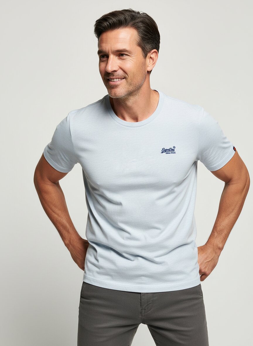 Das Shirt besticht durch seine klare, schmale Passform und die charakteristische Peach-Haptik der Bio-Baumwolle, die sich angenehm weich auf der Haut anfühlt. Das Material aus 100 % Bio-Baumwolle überzeugt durch Atmungsaktivität und Langlebigkeit – eine nachhaltige Wahl ohne Kompromisse bei Tragekomfort. Der klassische Rundausschnitt mit dezenter Navy-Logostickerei macht es zum perfekten Basis-Piece für Business-Casual und urbane Alltags-Looks. Bei Größe M bietet das Shirt mit einer Rückenlänge von etwa 67 cm und einer Brustweite von etwa 100 cm eine präzise Passform, die nicht aufträgt. Superdry verbindet britisches Design mit japanischer Präzision – minimalistisch, hochwertig und zeitlos.