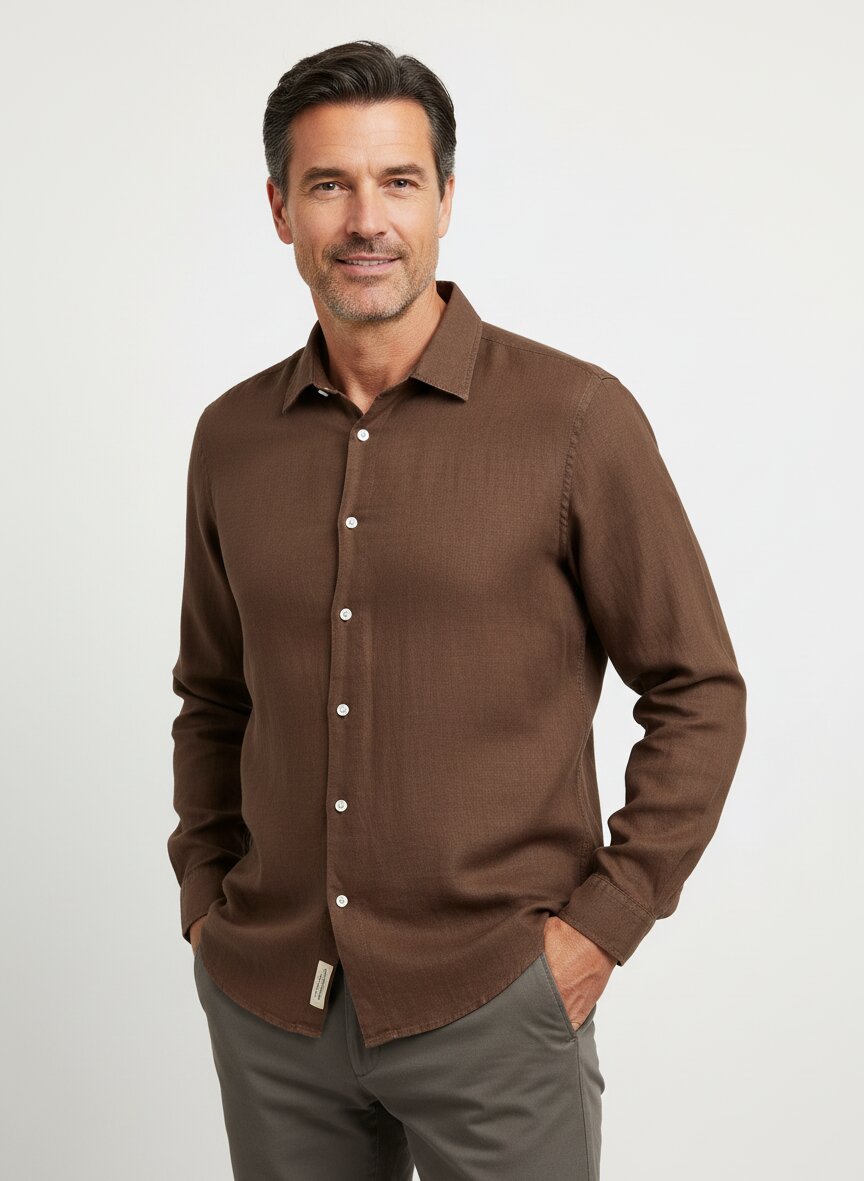 Leinenhemden sollten bei 40°C gewaschen und anschließend gebügelt werden, um die charakteristische Optik zu bewahren. Leinen knittert natürlicherweise, was zum klassischen Look des Materials gehört.