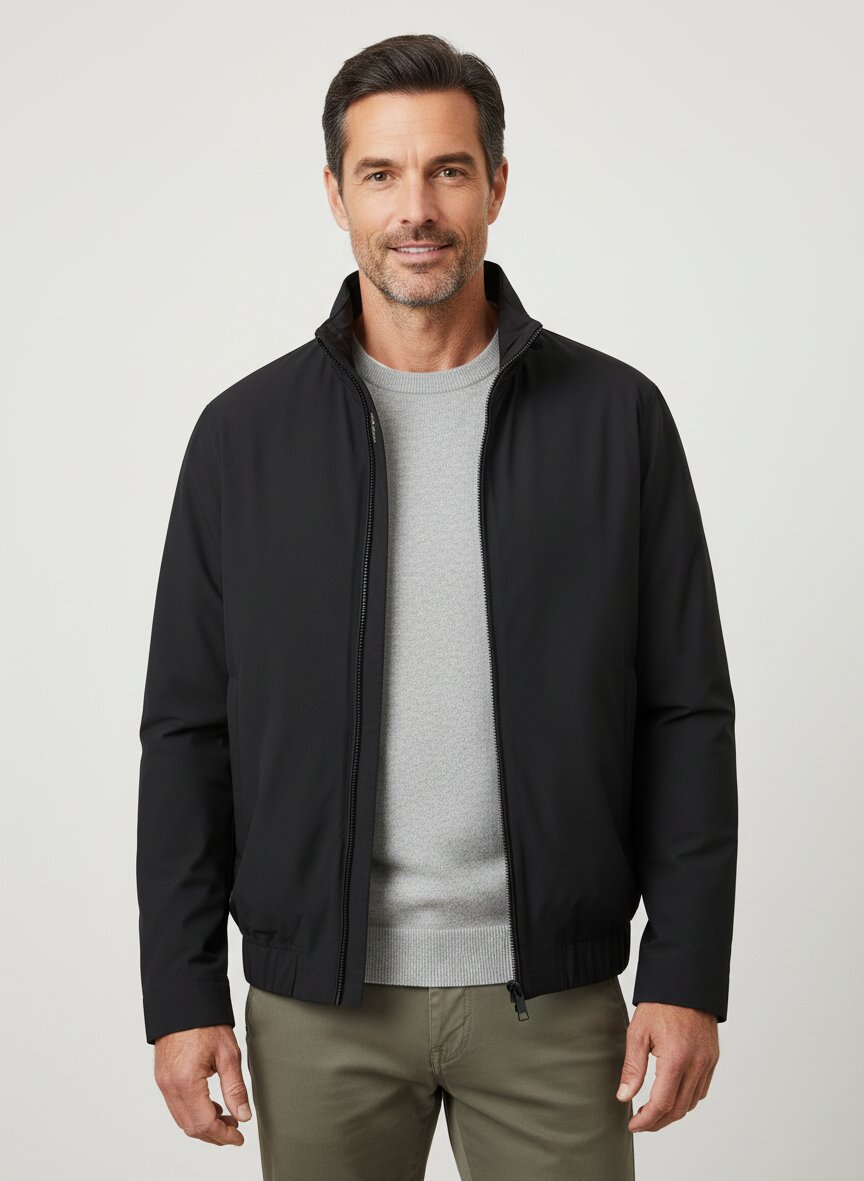 Mit Zwei-Wege-Reißverschluss, doppelt gearbeiteter Stehkragen, seitlich verdeckte Reißverschlusstaschen, innerer Ärmelsaun elastisch, Elastikbund
